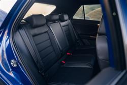 Volkswagen did its best to make this T-Roc R stand out from its humbler showroom stablemates. The front gets a more distinctive radiator grille bearing the 'R' logo and in place of the usual front fog lights, LED daytime running lights are set into the front bumper. From the side, you might notice that widened wheel arches surround the 19-inch 'Pretoria' alloy wheels and complement the black brake callipers complete with 'R' logo. There's also matt-chrome effect covers for the door mirrors and lowered 'R' sports suspension. Plus original buyers could optionally specify the contrasting black finish for the roof and A-pillars. The rear features smoked LED-taillights, an understated but assertive boot spoiler and a black diffuser. Plus the specially-designed rear bumper houses a R GmbH hallmark - four chrome-finished tailpipes. Inside, the cabin features a smattering of 'R' logos - on the door sill protectors, front seat backrests and leather trimmed multifunction sports steering wheel. Plus there's ambient lighting, 'Gloss Black' decor, stainless steel pedals and grey contrast stitching for the carpet mats. Otherwise, it's much as in any other T-Roc, which means there's rather too much hard plastic trimming about for a car of this price. As usual in a T-Roc, a high-set glass-fronted 'Discover Navigation' 8-inch infotainment screen dominates the centre stack on all models. This was upgraded to 9.2-inches in size as part of the 2022 facelift. It comes complete with sat nav and the usual DAB stereo, Bluetooth 'phone and car informational functions, along with Volkswagen's clever 'App-Connect' set-up for smartphone-mirroring. You also view a further TFT monitor - a digitalised customisable instrument binnacle screen that's either 8.0-inches or (post-2022) 10.25-inches in size and viewed through an R-branded three-spoke steering wheel. The fashionable cabin stuff works well; the trendy body-coloured centre fascia trimming panel; the lightly raised driving position; supportive seats with lumbar support; and generally well-judged ergonomics, though your rear view is compromised by the large C-pillars, so you'll need the standard rear parking sensors. In the back, the room on offer is fine by the standards of space in comparable small crossovers, though that's not saying a great deal. A couple of six-foot passengers can just about sit behind a couple of equally lanky front seat occupants with some degree of comfort but if there's a middle occupant, then he or she will need to sit legs astride the central transmission tunnel. But the doors are big, there are seat back pockets, you get an armrest with twin cup holders and twin UBC-C ports are provided below the centre vents. Boot capacity drops a bit to 392-litres in this 4MOTION-equipped 4WD variant (down from 445-litres for a front-driven model). Still, the cargo area's a good square shape and there are the usual tie-downs and bag hooks.