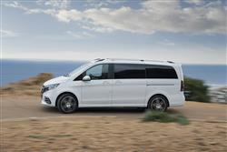 The powertrains haven't changed as part of this update, so as before, combustion models use the brand's OM654-series 2.0-litre diesel driving the rear wheels and mated to a nine-speed automatic. As before, this 2.0-litre, four-cylinder powerplant is offered in a couple of states of tune. The V220d has 163hp and 380Nm of torque - which is enough for a 0-62mph time of 11.0 seconds and a top speed of 121mph. The more potent V300d has 239hp and 500Nm of torque, although it can deliver 30Nm of 'over-torque' beyond this figure for short periods; it can manage the 0-62mph dash in 7.9 seconds and goes on to a top speed of 137mph. There's also an all-electric EQV variant. Here, a 100kWh lithium-ion battery develops a 204hp total output with 362Nm of torque and can now offer a claimed driving range of up to 222 miles between charges. As with most EVs, the top speed is rather limited - in this case to 98mph. Across the range, in our market, we can't have the four-wheel-drive variants on offer in mainland Europe. But Mercedes has tried hard to optimise the ride and handling package that its biggest People Carrier can offer. Hence the standard 'Agility Select' system that allows you to tweak throttle response, gearchange timings and feedback from the 'Direct Steer' speed-sensitive steering to suit the way you want your V-Class to respond. Plus there's 'Agility Control' adaptive suspension, a set-up able to tweak the damping to suit road conditions. Ultimately, all these efforts aren't really enough to make the dynamic experience on offer here in any way rewarding, but the overall compromise is decently impressive by the moderate standards of the super-sized MPV class.