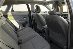 Though this second generation Kona Electric shares its new K3 platform with its close cousin and nearest class rival, the Kia Niro EV, surprisingly it doesn't share that car's electric motor and battery system. The differences aren't huge mind you: a 65.4kWh battery (0.6kWh bigger than the one in the Kia) and an electric motor with 214bhp (it's 201bhp in the Niro EV). But it's enough to make acceleration feel a tad more urgent. And crucially, for the driving range to be raised to a class-leading 319 miles with 17-inch wheels (36 miles more than the Niro EV). If you don't need to go that far between charges, Hyundai also offers the Kona Electric with a smaller 48.4kWh battery, a feebler 154bhp electric motor and a reduced range of 212 miles. With both versions, a standard heat pump should preserve those range figures in really cold weather. 0-62mph in the 65.4kWh version takes 7.8s en route to 107mph. As with the combustion mild hybrid and full-Hybrid Kona variants, you can expect a big refinement improvement thanks to the sleek aerodynamics and lessons Hyundai says it's learned from the slippery IONIQ 6. And this improvement is matched by a higher standard of ride quality, which is supple and aided by the stiffer platform with its greater use of high-strength steels. Hyundai has developed a new version of its 'i-Pedal' system, which allows selectable amounts of brake energy recuperation via steering wheel-mounted paddles. With the highest level of brake regen selected ('Max i-PEDAL'), the car will slow very noticeably off-throttle, almost down to a stop. There's a 'N Line' trim package available, but Hyundai says it has no plans for a full high-performance N version like the one it's developed for the larger IONIQ 5.