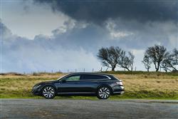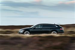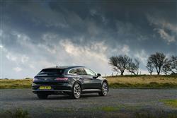 The engine range kicks off with a 150PS 1.5 TSI petrol unit with 6-speed manual transmission, but most will want the 2.0 TDI diesel, which in base form comes with 7-speed DSG auto gearboxes and a 150PS output. There's also a high power biturbo 2.0 TDI 200PS diesel option. Alternatively, there's a 190PS 2.0 TSI petrol unit, also with a DSG auto 'box. There are no mild hybrid powertrains because they won't work with this car's MQB platform. Beyond the mainstream powerplants, there are also a couple of engines new to Arteon buyers. The Arteon Shooting Brake eHybrid uses the plug-in hybrid powertrain from the Passat GTE, a 160PS 1.4 litre four-cylinder turbo petrol powerplant mated to a 115PS electric motor giving a combined output of 215PS via a DSG auto gearbox. This plug-in model offers an electric driving range of 33 miles and can run in all electric form at up to 87mph. At the top of the range is the Arteon R, which uses a 2.0-litre TSI turbo petrol engine with 320PS, a 7-speed DSG auto gearbox and an updated 4MOTION four-wheel-drive system. Refinement is excellent, as is ride quality thanks to a specially developed four-link independent rear suspension set-up that can be embellished with a sophisticated 'DCC' 'Dynamic Chassis Control' adaptive damping system. You won't really want to go throwing this Volkswagen about: it isn't really that kind of car. But what it lacks when it comes to driving on its door handles it more than makes up for with exemplary trans-continental-style cruising ability.