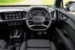 For both rear-wheel drive and quattro all-wheel drive versions of this updated Q4 e-tron, Audi has installed a permanently excited synchronous machine (PSM) on the rear axle. The update is supposed to release higher efficiency and greater power but with the base rear-driven Q4 40 e-tron, it doesn't quite work out like that. With 204PS on tap and an EV range of 250 miles, this base variant has no more power and 66 miles less range than the pre-facelift Q4 40 e-tron model we tested at launch back in 2021, though to be fair, that car had a larger 76.7kWh battery; the current Q4 40 e-tron's battery is just 63kWh in size. Most Q4 e-tron customers are going to need Audi's larger 77kWh battery - for which they'll usually be stretching to one of the two Q4 45 e-tron models, which both offer 286PS and are available with either rear wheel drive (with a 342 mile range) or quattro 4WD (with a 309 mile range). Also using that battery is the flagship Q4 e-tron 55 quattro, which has 340PS and a 320 mile range. All those range figures by the way, are for the standard SUV body shape; you'll do slightly better if you opt for the sleeker Sportback body style. Performance in the base Q4 40 e-tron isn't especially rapid (0-62mph in 8.1s en route to 99mph), but if you stretch to one of the 45 models, an owner of an earlier Q4 e-tron would find that performance is noticeably perkier; rest to 62mph takes 6.7s and the top speed is 112mph. In the Q4 e-tron 55 quattro, 62mph sprint can be dispatched in just 5.4s. That 2024 facelift saw Audi re-tune the chassis across the range for greater driver involvement. As part of this, the steering's sharper. The engineers also tinkered with the suspension, aiming for greater comfort and stability; as before it's a MacPherson strut front and five-link rear arrangement, with sports suspension available (which lowers ride height by 15mm) and adaptive damping offered further up the range. Audi's also created what it calls a new 'character sound', which is offered as an option and emitted via two exterior speakers at the rear and two interior speakers in the rear doors. This 'soundscape' varies according to load and speed. There's now a camera drive assist feature too, which allows assisted lane changes above 56mph. Otherwise, things are as they always have been with this model. The Q4's pretty straightforward to get to grips with behind the wheel. You select drive using a slider-type shifter situated on the centre console and once underway, there's the kind of instant throttle response you'd usually get from an EV of this sort.