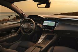 There aren't any significant mechanical changes as part of this update so on the road, as before, you might find this 408 quite a curious confection. The Fastback visual demeanour's sporty; the soft-orientated ride quality isn't. The grippy little 'i-Cockpit' steering wheel feels ready for wrist-flick B road brawling; the mandatory and rather hesitant 8-speed auto gearbox doesn't. Put aside preconceptions and genre pigeon-holing and you'll be happier. 4-series Peugeots have always been comfort-orientated and the auto gearbox swaps smoothly when unstressed. Plus you might well find the steering to be actually a quite nicely-weighted and engaging set-up, providing you can get on with the 'i-Cockpit' arrangement this car champions. Arguably the most conventional part of the 408 lies with what you'll find beneath the bonnet, all of it a duplication of what's on offer in the 308 hatch. The range kicks off with the Hybrid 145 e-DSC6 derivative. It's a non-plug-in, but its 48V system (with an electric motor built into the 6-speed auto transmission's casing) runs much of the time in urban traffic on battery power alone. Next up is the Plug-in Hybrid version. You might marvel at its technology, which mates an 81kW electric motor with a 1.6-litre PureTech petrol engine that primarily contributes to a total output of 225hp. It works with a 7-speed dual clutch auto gearbox and the 17.2kWh battery that powers the motor should deliver about 53 miles of EV range before the engine cuts in. A full-electric E-408 model is also available, with a 58.2kWh battery pack which energises the same synchronous electric motor as is used in the E-3008, with 210hp and 345Nm of torque. It now offers 283 miles of range (two miles further than before thanks to aerodynamic refinements). All the powertrains on offer only drive through the front wheels. Semi-autonomous drive tech is offered via a 'Drive Assist Pack' that allows stop-and-go driving in lane and semi-automatic lane changes with the indicator toggle stalk.