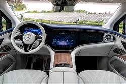 This car is prodigiously heavy - up to 3,118kg - much of which is accounted for by the prodigiously large 118kWh battery all versions of this model now use. The mainstream variant choice kicks off with the 360hp EQS 450 4MATIC, which makes 62mph in 4.1s. Alternatively, there's the 544hp EQS 580 4MATIC, which improves that sprint time to just 4.7s. Both EQS SUV 4MATIC models claim a range of up to 401 miles and a top speed of 130mph. The other EQS SUV variant is for oligarchs only, the Mercedes-Maybach EQS 680 SUV. This has 658hp, gets to 62mph in 4.4s and offers a range of up to 369 miles. You might not expect the dual motor 4WD system fitted on all EQS SUV models to take this car far off piste; you'd be wrong actually. With the optional 'off-road' driving mode fitted, the air suspension rises by 25mm and primes the 4MATIC system for slippery terrain. The 360-degree camera system can also provide off-road graphics - and special images like the so-called 'transparent bonnet view', ideal when driving over rocky surfaces. There's four-wheel steering too, with the rear wheels able to turn by up to 10-degrees. Which at parking speeds means an extraordinarily tight turning circle for a large SUV. Go faster and you should find that the car's ability to vary the amount of drive to each individual wheel depending on the grip available makes it feel more agile through the turns than the huge kerb weight would lead you to expect it to be. When cruising, the air suspension's ride height falls at above 74mph, which improves aerodynamic efficiency and ups the driving range. Refinement and luxury are central to the EQS SUV, which means special acoustic foams as well as rubber insulation of the electric drive units have been used to reduce interior cabin noise to a near whisper.
