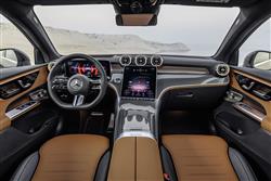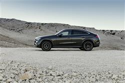 Mercedes says it's made the steering of this second generation GLC Coupe a little sharper than the SUV version to give this sporty-looking variant a small dynamic edge. But the difference is slight. The engine range is the same as that of the ordinary model, which means it's fully electrified. As before, the line-up will mainly sell in 2.0-litre petrol and diesel forms, both units now embellished with mild hybrid tech. The GLC 220 d diesel has 197hp; the GLC 300 diesel has 269hp; and the GLC 300 petrol has 258hp. Over the last few years, this model line has been increasingly popular in Plug-in Hybrid form. The GLC 300 e model uses the 2.0-litre petrol engine and develops 308hp. Its 31.2kWh battery offers an EV range of up to 77 miles. The GLC 43 and GLC 63 AMG performance variants will also get 2.0-litre four cylinder powerplants - petrol ones of course; a mild hybrid for the 43 and a 671hp PHEV unit for the 63. As before, all models across the line-up feature 4MATIC all wheel drive and a 9-speed automatic gearbox. Optional is AIRMATIC air suspension and this MK2 model further adds the option of Rear-Axle Steering, the latter vastly improving the car's turning circle (by 90cm) and giving extra stability through the bends.