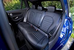As with the first generation GLC 300 e, a four cylinder petrol engine here is mated to an electric motor powered by a lithium-ion battery. It's that battery that's the biggest change with this second generation GLC Plug-in, more than doubled in size from 13.5kWh to 31.2kWh, which is pretty large for a PHEV. As is the resultant driving range figure - up to 78 miles. To give you some perspective, the previous generation GLC 300 e only went 27 miles on battery power alone. The equivalent C 300 e saloon has a smaller 25.4kWh battery, so only goes 68 EV miles between charges, so beyond mere practicality and fashion, there's plenty of justification for choosing the Crossover body style. If you want a Mercedes Plug-in of this size and are choosing between C-Class and GLC, there are other differences too. The rear-driven format of the C 300 e is replaced by a 4MATIC AWD system in the GLC. And, unlike the C-Class, the GLC Plug-in can also be had in diesel '300 de' form, if you don't mind a strike against the current zeitgeist and want even greater economy. It's the petrol GLC 300 e variant that's our focus here though which, like its diesel counterpart, gets a 134hp electric motor to assist the 2.0-litre combustion engine up-front. In the case of the GLC 300 e, that means a combined total output up at 308hp. Enough, even with this car's prodigious 2,355kg kerb weight, to dispatch 62mph in 6.7s en route to 135mph. Talking of weight, there's so much of it here that Mercedes has had to fit self-levelling air suspension at the rear to better control the extra bulk of the bigger battery pack. This damping set-up is more softly tuned than the sportier springing set-up used on more conventional GLC models, so the car feels less comfortable being thrown about - though few potential customers will want to do that anyway. What's of more interest here is to make the most of the efficient attributes of this clever powertrain. The car always defaults to full-electric EV mode if there's enough charge in the battery - and there usually will be because Mercedes has integrated a very effective brake regeneration system to replenish the system cells when slowing, braking or cruising. Only when you (or the car) switch to the Hybrid drive setting does the engine come into play, with smooth, seamless acceleration via the brand's usual 9-speed auto gearbox.