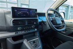 Not too much has changed with the engineering of this revised E-Expert, but you can now only have it with the bigger of the two batteries previous offered - that with 75kWh. Peugeot has tweaked this so that it now takes this van 12 miles further than before - to a WLTP-rated total of 230 miles. That battery drivetrain is the same as with this model's Citroen, Fiat, Vauxhall and Toyota counterparts. There's not too much to adjust to when driving this full-electric mid-sized van. Turn the key in the ignition, then wait for the starting beep, then flick the gear toggle into Drive. There's a drive-mode selector that allows you to switch between 'Eco', 'Normal' and 'Sport' modes. The 'Normal' setting restricts you to 109hp and will feel a bit like driving a lower capacity diesel. 'Eco' mode restricts you further to 81.5hp and reduces the power consumption of the air conditioning and other accessories. There's 136hp on tap and there are regenerative brake energy steering wheel paddles that allow you to plough extra energy back into the battery, offering more resistance while you're slowing down. This isn't one of those EV vans that impresses you with its startling acceleration. The rest to 62mph sprint takes 14.3s and top speed is just 84mph. A key factor behind the success of the combustion Expert has always been in the way it remains compact and wieldy in the manner of smaller, more car-like vans from the class below. This current generation model feels really wieldy around town and resists body roll well for an LCV of this size thanks to carefully chosen damper settings and a stiff EMP2 platform. Special wishbone filtering dampens the impacts of our country's terrible tarmac and the variable stiffness springs and shock absorbers deliver surprising levels of comfort whether the vehicle is loaded or unloaded.