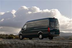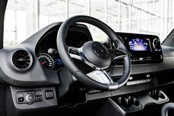 Engineering changes don't get much more fundamental than this. The eSprinter has switched from front to rear wheel drive, with the drivetrain now part of a new modular set-up. At the back, there's a completely new rear axle containing an electric motor putting out either 136PS or 204PS, depending on your preference. The vehicle's high voltage components and control systems now lie in the front portion of this van. While the battery packs sit in the middle under the floor and are now made of lithium-ion-phosphate and contain no nickel or cobalt. In place of the original model's old-tech 55kWh pack, there's now a choice of two available batteries: an entry-level 81kWh option and the top 113kWh battery that can take this Mercedes as far as 273 miles. Both motors put out a gutsy 400Nm of torque, one reason why the eSprinter can pull a 2,000kg trailer. And each motor weighs only around 130kgs and is characterised by particularly high efficiency and optimised thermal management. Three driving programmes: Maximum Range, Eco and Comfort, control engine power, engine torque and climate control. You won't want to be selecting Maximum Range too often because it reduces power by 20%. There's a regenerative braking system of course, to convert kinetic energy into electrical energy, which is controlled via these wheel-mounted paddle selectors; choose between five levels, the fiercest is 'D-', though you'll probably just leave your eSprinter in 'D Auto', which uses a radar sensor to select the optimum amount of regen, based on traffic or topography. Handling through the turns is actually slightly better than the diesel equivalent thanks to all the low-slung batteries. Refinement is un-bettered in the class - up to the highest Mercedes van standards. The turning circle is 13.4-metres with the L2 version and 15.3-metres with this extra-long L3.