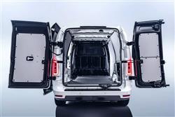 LEVC calls this an 'electric van', even though you put fuel in it and it has a 1.5-litre three cylinder engine. A Plug-in Hybrid designation is closer, but in this case the engine never actually drives the wheels; that's done by a 148bhp electric motor on the back axle powered by a 34.3kWh battery capable of taking the VN5 up to 73 miles before fossil fuel is required - at which point you can go another 255 miles. This type of drive format is better described by the term LEVC uses - that of a 'Range Extender'. The only other contender close to offering this kind of set-up is Ford's Transit Custom PHEV, but that uses a much smaller 11.8kWh battery, so has nothing like the EV range of a VN5. It certainly feels like an EV to drive. With key in pocket, you simply press the brake pedal and move the gear selector rocker switch clockwise to turn on, then click the selector into Drive. There are three drive settings: 'Pure EV' keeps things all-electric until charge runs out. 'Save' allows you to store battery energy until you need it (perhaps for urban driving at the end of a long motorway trip). And 'Smart' does it all for you, managing energy automatically. There are also three brake energy regeneration settings, comprising a coasting function and two levels of resistance, accessed by moving the gear selector right or left. The VN5 is sprightly off the line. And it's taxi origins are revealed by a super-tight 10.1-metre turning circle.
