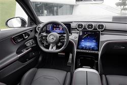 If you happen to be familiar with the previous generation C 43, you could be forgiven for approaching this replacement 'W206'-series model with a twinge of disappointment. You might have expected that part of the point of replacing the old snarling V6 with a four cylinder unit would be to aid efficiency by reducing weight, but in fact the saloon version of this car is actually 101kg heavier than its predecessor. Which is why, despite the fact that the 402hp power output this time is 40hp more than before, the rest to 62mph sprint time (4.6s) has been improved by only (0.1s). Top speed is still limited to 155mph. It's also disappointing to note that torque has dropped by 20Nm to 500Nm. But things get better if you're prepared to stick with what AMG is trying to do here. Somehow, the engineers have managed to make this 'four' sound as good as the old 'six', though it unfortunately lacks the wild roar that characterises much the same M139 2.0-litre unit in the other model in which it's used, the A 45 S hot hatch. Unlike the 8-speed auto used in that car, the engine's paired with a 9-speed auto here and gets a mild hybrid electrified set-up working via a Garret 48V turbo using a compact motor that acts directly on its shaft, spinning at up to 175,000rpm. The mild hybrid system adds a 14hp boost at low speeds to counter turbo lag. Torque is transmitted to tarmac via 4MATIC all-wheel drive system with a rear-biased power split of 31:69. Standard-fit adaptive dampers firm up noticeably in the fiercest 'Sport' or 'Sport+' Dynamic Select drive modes. Which helps contain body roll through bends where you'll notice the sharp steering, the rear-wheel steering system and that prodigious 1,840kg kerb weight (though that's way better than the portly 2,165kg figure of the PHEV C 63). The brakes are excellent, upgraded to ventilated six-piston calipers at the front, with 370mm brake discs.