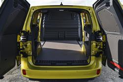 Given that the MEB platform here was primarily designed for medium-to-large cars, not a commercial vehicle, you wouldn't expect the ID.Buzz Cargo to feel especially van-like to drive - and it doesn't. With a 204PS electric motor, it's not short on grunt and it's mainstream 79kWh battery is impressive in range too - a class-leading best of 276 miles. Thanks to a healthy 310Nm of torque away from standstill, it certainly feels a good deal more urgent than its main more conventional (primarily Stellantis Group-designed) mid-sized EV rivals. The 62mph from rest sprint occupies 10.2s, en route to the very modest top speed of 90mph. For more urban-based businesses, Volkswagen also offers a version with a smaller 59kWh battery mated a 170PS motor and a range of 200 miles. In both models, the car-derived platform is supple over bumps and both wind noise and tyre roar are very well suppressed. Towing weight is rated at 1-tonne; some rivals can pull more. With the larger battery, there's the option of a 4MOTION 4WD version too. You're not spoiled for driving modes or lots of brake regeneration settings. There's just a 'B' option for the gear selector, which decelerates the vehicle by up to 0.3g off-throttle, which is useful, but nothing like enough to deliver 'one-pedal' driving at low speeds. Cruise control with intelligent speed assist comes as standard and there's more camera safety kit than you might expect from a van. There's a tight 11-metre turning circle, which along with the glassy cabin should make the Buzz feel very manoeuvrable in town. All the usual VW drive assist features are available - Matrix headlights, 'car2x' swarm informational technology and the 'Travel Assist' semi-autonomous drive system.