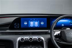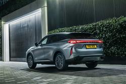 For our market, the Omoda 9 comes only with a petrol Plug-in Hybrid powertrain. And it's a headline-grabbing one, its 93 mile EV range figure better than any other PHEV you can currently choose. That's mainly because of a drive battery that, at 34.5kWh in size, is absolutely huge by Plug-in Hybrid standards. To give you some perspective, Volkswagen's Tayron eHybrid (which is similarly sized and priced) has a 19.7kWh battery offering a 70 mile EV range. That Tayron (like most other mid-sized SUV PHEV rivals at this price point) is front-driven and modestly powered (with a maximum of 268bhp). The Omoda 9 in contrast, is in another league of sophistication and power. That huge battery is linked to a 1.5-litre TGDI turbo petrol powerplant mated to a three-speed Hybrid transmission and two electric motors (one on each axle) for four wheel drive. Total output is 443bhp and 700Nm of torque, which means 62mph from rest takes just 4.9s en route to 121mph. There are six drive modes (Eco, Normal, Sport, Mud, Snow and Off-road). And the 9 rides on magnetorheological adaptive dampers. Huge efforts have gone into optimising refinement, the brand installing double-glazed windows and fitting acoustically optimised Michelin tyres. A more conventional 2.0-litre turbo petrol powertrain is offered in other markets, but we won't get that here.
