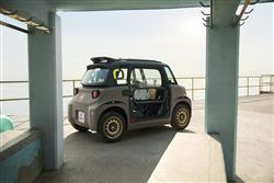 Nothing's changed about the drive experience of this updated Ami Buggy. As with the ordinary Ami, it's as well to remember that this is a 'quadricycle' rather than a car. Which means it's limited to 28mph, there's a 46 mile EV driving range and it's not subject to the usual safety stipulations governing cars. Presumably if it was, there be doors... Road tyres and no ride height increase mean the Baja rally-style looks aren't matched by any real off-road prowess. If things go wrong on the sand, there is at least a full-sized spare wheel: it's on the roof... You sit high and commandingly, all-round visibility is brilliant and if it were legal, you could park it nose-on to the kerb. Park normally and you'll find this Ami takes up half the space of an ordinary car. On the move, other drivers smile and wave you through, while pavement folk wave and make comments ranging across the complete spectrum from admiration to derision, all of which you'll hear clearly through the open door ways. This might be an EV but it certainly isn't quiet, the little motor whirring like a vacuum cleaner as the stiff ride clunks you over the pot holes and speed humps of the urban landscape, suspension travel being rather limited. The hair dryer-like din of the roaring ventilation fan adds to the commotion, on a rainy winter's day its single-speed struggling to clear the vast glass area ahead. We'll state the obvious: you can't drive this Ami on a motorway - and we'd think twice about major highways too if you don't want a queue of angry drivers behind you. Accept all of these caveats though and you'll find so much to like about urban life with this little Citroen. The Ami's a supremely table little thing and can dart through the traffic like a Deliveroo scooter. Best of all perhaps, the turning circle is outstanding - just 7.2m.