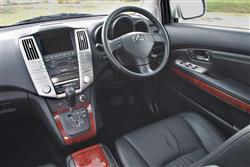The styling is a good deal sportier than before, Lexus perhaps figuring that if customers weren't overly concerned with off roading, then nor did they need the internal dimensions of a pantechnicon. That said, the shape cleverly disguises the fact that this model is bigger and roomier than most of its rivals. It's also a full 155mm longer than its predecessor and 25mm wider with a 100mm stretch in the wheelbase for additional passenger room. Three main trim levels are available, with the entry-level RX300 opening proceedings. The SE version adds 18-inch alloys, leather trim, heated front seats, an electrically adjustable steering wheel, rain-sensing wipers, a power operated tailgate and memory for the driver's seat and mirrors amongst other features. The flagship SE-L version includes the Lexus Navigator sat-nav system with colour imaging rear view camera, an 11-speaker Mark Levinson stereo, air suspension and Active Front-Lighting System (AFS). This swivels the headlights for better visibility when cornering, taking into account the car's speed and the steering angle, and is linked to an automatic levelling system for optimum results. Water repellent glass and rain sensing wipers help visibility still further and, if the worst should come to pass, the RX300 is seriously tooled up with airbags. As well as the usual set of twin front and side airbags, the RX300 adds curtain shield bags at the sides and, for the first time in this sector, knee airbags for the driver. This bag helps to reduce injury caused by contact with the unyielding steering column, but tests have shown an additional benefit. Knee bags also reduce head and chest injuries. How? In a usual front-end collision, the legs come into contact with the lower dashboard and steering column. Rarely contacting square on, this causes the pelvis to cant forward and begins a twist in the driver's body that can prevent the airbag in the steering wheel doing its job to optimum effect. Knee bags nip this in the bud, making for a safer car.