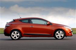 Only the headlamps, bonnet and front wings are carried over from the five-door hatch to the Megane Coupe's exterior and you'll believe that when you see the car. It's certainly an appealing piece of design and one that's well worthy of consideration alongside the market's prettiest hatchbacks and compact coupes. The rear end is particularly admirable with the side window line rising dramatically to a point that meets with that of the curving rear screen above the pumped-up haunches. The downside of this elegant glasswork is poor rear visibility but with a set of parking sensors installed, that should be easy to live with. The Coupe's interior is more sober. The design follows that of the straight-laced Laguna but the Megane also inherits that car's first-rate build quality. The materials are as good as it gets for a family hatchback although some of the buttons are rather small. The only real spark of individuality comes from the digital speedo that dominates the instrument cluster. Space in the rear is OK for a pair of adults but the Coupe's rakish roofline impinges on headroom. At 344-litres, the boot is on the generous side for a car of this kind and usefully shaped. In terms of trim levels, it's a familiar Renault case of Expression, Dynamique, GT or Privilege for Megane Coupe buyers, assuming they can't stretch to Renaultsport R.S. trim. Even the Expression gets 16" alloys, air-conditioning, a trip computer, keyless entry, remote central locking and front fog lights, so it's hardly Spartan. The Dynamique adds automatic wipers and headlamps plus an upgraded stereo, cruise control and tinted windows. Standard kit also includes ESP stability control, ASR Anti-Skid Regulation and a comprehensive collection of airbags in line with Renault's excellent reputation for safety.