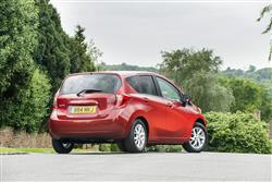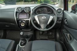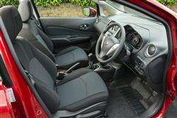 Previous generation Note models looked neat but rather anonymous. This MK2 model though, is a touch more eye-catching, thanks in part to a roof height lowered by 20mm to try and give it a more stylish, supermini feel. At the front, you'll spot a distinctive chrome grille that seems to take a bite out of each headlight, the nicely chamfered wheel arches and the detail lines in the flanks that help avoid a slab-sided look. Nissan calls this the 'Squash Line' because it was apparently inspired by the angles a squash ball takes around a court. There's not too much squashing going on inside. On the contrary, this is arguably the roomiest small car you can buy from this period - and yes, in saying that, we're including in that consideration Vauxhall Meriva and Ford B-MAX-style supermini-MPVs, as well as the conventional Fiesta-shaped superminis Nissan says this car is supposed to compete with. In fact, you get an idea of what's to come as soon as you pull back doors that open to an uncommonly wide 90-degree angle for easier entry and exit. Inside, it's very spacious for rear folk. Though the seat backs don't recline, the whole bench does slide back and forth, providing you avoid entry-level trim. It also offers a centre armrest with hidden cupholders and if you push the thing right back, you'll find yourself with an enormous 639mm of knee room - more even than you'd get in a huge BMW 7 Series luxury saloon. Of course, you won't always need all of that, so the bench has 160mm of fore and aft travel and even with it pushed right forward, it's possible for two 5ft 10-inch adults to sit in reasonable comfort. Either way, it should be possible to find the perfect compromise between space on offer for people and the packages they must carry behind. On that subject, what about the cargo bay? It's accessed via a rear end characterised by an up-swept C-pillar that combines with smart wraparound rear light clusters. Lift the light tailgate and with the seat pushed right back, there's still 325-litres on offer, 20% bigger than a Fiesta or a Corsa from this period and 45-litres more than the MK1 Note model could offer. Push that bench right forward and the figure rises to 411-litres, way more than you'd get from a Focus-sized family hatch from the next class up. You can really use this space too: there's a deep space beneath the boot floor and, on models with the sliding rear bench, a Flexi board multi-level panel that can be used to divide the load area and stop shopping bags from rolling around if you haven't attached them to the two hooks provided. If you do need more space, then pushing forward the 60/40 split-folding seatbacks can free up as much as 2,012-litres, a figure no other compact car from this period can match. And up front? Well the driving position is quite high-set and supermini-MPV-like in style while surrounding you with trim and design that, despite the brand's protestations of trendiness, errs very firmly on the sensible side of stylish. To be fair, you can see that some efforts have been made here - the glossy black centre stack with its trendy circular climate control console looks fashionable enough - but you'll mostly look in vain for soft-touch plastics and splashes of chrome. Still, it's a practical cabin which makes up for its small door pockets with plenty of cupholders and a double-deck glovebox that neatly shuts away devices you might have connected to the USB and aux-in sockets you'll find there. Overall build quality from the UK factory in Sunderland seems strong and the materials should certainly be hard-wearing. This being the second generation Note, you'd have thought that the designers would have got round to providing the kind of fully adjustable steering wheel that almost every other maker offers across its range. Sadly not. It can move up and down but not in and out. Which can make getting comfortable difficult if you're in an entry-level variant also lacking a height-adjustable driver's seat. Through the three-spoke wheel, you glimpse a neat set of instrument dials with a floating-style digital display in the centre, a layout which offers the option of switching on various coloured lighting-driven eco functions that monitor the efficiency of your driving. Plusher models get a dash dominated by the larger 5.8-inch screen of the NissanConnect navigation and communication system. As well as operating the usual audio, trip computer and Bluetooth 'phone functions, it can tell you stuff like weather, traffic information and fuel prices plus, amongst other things, find you the most efficient route, score the green-friendliness of your driving or offer you Google 'Send-To-Car' technology so that you can plan your route on your PC before you go, then forward the instructions on to your Note. Google's Point of Interest search system is also included, as well as access to things like weather forecasts, local fuel prices and flight information. Plus, if you've specified the 'Around View Monitor', this screen will display a 360-degree 'helicopter view' overhead image to simplify tight parking manoeuvres.