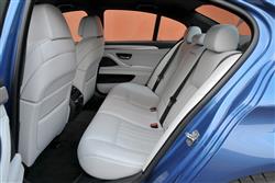 M5s have always been good at dialling down the aesthetic excess to create a potent, yet low key appearance that'll let you get away with using more of that performance more of the time. This one is no different, understated to a tee, just as most owners will want. Compared to its predecessor, this F10 generation car cut out the take-aways and hit the gym a bit harder, with a far more lithe profile and sleeker detailing. Being longer, wider yet lower will do that for you. Couple that with some more overt M styling touches and you're left with a more confident design that shares only 20% of its parts with a regular 5 Series. At the front, the broad black grille slats and the trio of air intakes that cool the big V8 combine with the LED light rings and bi-xenon main beams to afford some serious rear view mirror presence. The wheel arches are gently teased over 19-inch wheels as standard - but many original owners opted for extra-cost 20-inch rims. Though the wheel spokes, you glimpse the six-piston fixed callipers of the high performance braking system. The lowered suspension means the car's stance is spot on, the wheel arches properly stuffed and with the perfect amount of ramp angle in the body to give the car a tense, poised appearance. The rear view contains a four-pipe exhaust pack, divided either side of the diffuser, whilst a small flap on the rear edge of the boot lid provides additional downforce at speed. Inside, as usual with BMW cockpits, the driving position is dominated by a central 10.2-inch colour screen that marshals the functions looked after by an iDrive system that in this form was much simpler and more intuitive to use. If you thought though, that the whole purpose of iDrive was to reduce cabin button clutter in cars like this, you might be interested to note that before you even get to the myriad of functionality that is iDrive, there are no fewer than 58 buttons to get to grips with. But then the controls of any sophisticated race-bred performance car are likely to feel daunting at first glance. And race-bred this M5 most certainly feels, from its M Sport seating to its aluminium trim, from its red-needled white-lit M circular instrument dials to its grippy three-spoke M leather steering wheel. As ever, this remains a practical supercar, so up to three adult rear seat passengers can join you as you power from 0-124mph in just 13 seconds at the beginning of a tyre-smoking lap of somewhere like the Nurburgring Nordschleife. You can easily sit one six-footer behind another, with head and elbow room to spare. And your passengers' belongings can be equally comfortably ensconced in a spacious 520-litre boot nearly double the size of that in, say, a rival Lexus ISF. A space that's further extendable if you get yourself a car fitted with the optional split-folding rear seats.