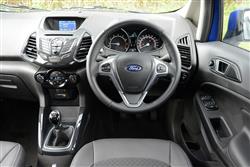 The EcoSport is a real global effort, designed in Brazil, with the version launched in 2013 built in India. It leans heavily on Ford's so-called Kinetic2 design language, with its large trapezoidal grille, smeared back headlights, short overhangs and an interesting blend of sharp angles and more organic curves that try to soften a front end sheerer than the North Face of the Eiger. Joao Ramos' design team were clearly aiming for a bit of SUV attitude, but some may feel the finished result sails a little close to cuteness, with a look described by one writer as being akin to a Chihuahua in a studded collar. The Blue Oval brand will probably argue this to be exactly what many potential buyers would want - and we wouldn't disagree. The sharp-looking headlights feature LED running strips, there are indicators integrated into the door mirrors and there's a decent amount of shape and style in the flanks. As with most designs of this kind, it's very sensitive to colour and trim choice, so if you're a potential buyer, we'd spend a bit of time on selecting the right shade and considering wheel rim sizes. Talking of wheels brings us to the issue of the rear-mounted spare that you had to have when this car was originally launched. In 2015, Ford made this feature optional. If your EcoSport does feature this embellishment, you'll get a crossover harking back to the SUV-look of the Nineties, which apparently is still very much in vogue in this car's home Brazilian market, where quick and easy access to the spare wheel is essential for safety reasons. That's all well and good but this is supposed to be a 'global' Ford design and the company should have known from the start that outside of the tropics, buyers generally don't take to this feature. This isn't necessarily because they don't like the rugged look. Or because they don't want the kind of proper full-sized spare wheel that's such a rare feature in most of today's modern cars. No, buyers don't like it because a huge spare wheel on the back means you can't fit a conventional top-hinged tailgate and the side-opening rear door you must have instead creates all kinds of awkwardness when you're trying to access the boot when backed into a tight parking space. Even if your EcoSport of choice doesn't feature a tailgate-mounted spare wheel, there's still the issue that the side-opening door is hinged on the left side. That means it opens away from the pavement, so when you get your stuff out, you can't put it straight onto the safety of the sidewalk. Instead, you've to put it onto the ground, then move it out of the path of the door before it can be shut. This wouldn't be such an issue if the kind of opening rear door glass section you get on many modern estates and SUVs was present here for getting smaller items in and out. But unfortunately, this feature was never made available. All that said, you soon learn to live with the side-opening tailgate - maybe even to like it. Toyota LandCruiser owners seem to. As for boot space, well the 346-litre capacity isn't one of the largest in the segment. Still, it is over 40% more than the pathetic total you'd get in a rival Nissan Juke. If you want more space and can flatten the 60:40 split-folding rear bench, then up to 1,238-litres is available. Transport of bulkier stuff will be aided by the way that the smart standard-fit aluminium roof rails enable bikes and roofboxes to go up top quite easily. On to rear seat space. Getting in isn't especially easy as the door aperture is quite narrow, but once inside, you'll find the back of an EcoSport a surprisingly pleasant place to be thanks not only to the high, airy roofline but also to the fact that the rear seats are set slightly above those in the front for a better view out. Of course, as with all cars in this class, there'll be the issue of restricted width if, rather optimistically, you're trying to cram three full-sized adults in the back, but a trio of kids will be fine. And up front? Well, the Fiesta DNA that's lacking in the exterior looks is certainly well in evidence here, most notably with the mobile phone-style array of buttons on the centre console. It's a button-fest that can seem rather overly complex at first, but one you quickly adjust to. The six-way adjustable driver's seat offers a supportively commanding perch and the instruments are clear and concise. As for build quality, well you could easily guess that one of these is screwed together in an Indian factory from the hard, utilitarian plastics used around much of the dash. Still, it all feels solid and Ford's European division has done its best to plush things up with this smart gearstick and leather-trimmed multi-function steering wheel. It's a practical cabin too. The odd coat hook would have been nice but in terms of stowage space, owners are undeniably well provided for with no fewer than twenty different cubbies and compartments for 'phones, sunglasses, coins, cups, drinks and chocolate bars. You get properly sized doorbins able to swallow a 1.5-litre bottle of water, a decently sized cooled glovebox that can hold six 330ml cans, large seatback pockets and a drawer under the front passenger seat to keep valuable items away from prying eyes.