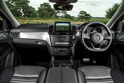 Up close and personal, the GLE Coupe is quite a substantial thing. Standing over 1.7m tall, 2m wide and almost 5m in length, this car dwarfs almost everything else on the road and were it to be bearing down behind in your rear view mirror, you'd scuttle over double-quick. The huge gaping front air intakes emphasise the upright single-louvered sports grille that's framed by three-dimensionally-designed all-LED headlamps. Above, the forward-sloping bonnet with its typical Mercedes power domes aims to characterise this car as one of the brand's sporting models, rather than just another of its SUVs. From the side, the shape is even more arresting, with the muscular wings and high beltline of a classic sporting GT somehow blended with the large wheel arches and generous ground clearance of an SUV. The wheels themselves are simply enormous, made available to original buyers in a 22-inch size that's bigger than anything Mercedes had previously used. This rising lower character crease connects them, working with a more sharply-defined upper swage line to add a sense of purpose to a profile that dips dramatically over the rear C-pillar. At the rear the designers replicated the style of Mercedes' exotic S-Class Coupe, with a slim chrome band sitting over three-dimensional LED rear light clusters and a registration plate incorporated into the rear bumper. The way the rear window is rounded off at the top references a look that for generations has characterised large Mercedes coupe models, this feature incongruously blended with SUV touches like the chrome-plated under-ride guard that sits alongside the twin tailpipe exhaust system. Behind the wheel, much less effort was made to differentiate this car from its standard, practically-orientated conventional GLE model stablemate, so the dashboard architecture and control layout is much the same. Still, to try and make up for that, the development team sweated over the details. So the superbly comfortable, commandingly-mounted sports seats get AMG bolsters in nappa leather. Plus there are sports pedals finished in brushed stainless steel and the steering wheel is a smaller stitched AMG item with a supercar-style flattened bottom rim and tactile gearshift paddle-shifters. All well and good. Where you might be expecting problems though, is when it comes to a seat in the rear. As with every other car in the Coupe SUV segment, that sloping rear roofline has to tell somewhere and, sure enough, really tall folk will have to duck a little to avoid it as they enter. Once inside though, there aren't too many issues. Yes, a third centre-seated person won't be especially comfortable, but since this is supposed to be a 'coupe', we can't see too many likely buyers objecting to that. One of the biggest advantages this car has over its BMW X6 arch-rival is that it offers you around 15% more boot space, the 650-litre total only 40-litres less than you'd get in the conventionally boxy standard GLE model.