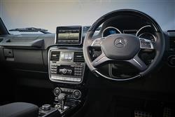 By anyone's reckoning, this is an unlikely fashion accessory. Yet despite a setsquare shape with the aerodynamic qualities of a semi-detached house, that's exactly what this G-Class has become. This modern-era version is still known by brand loyalists as a 'W463 series' model, but it's very different to earlier Gelandewagens that shared that classic designation, the completely redesigned body for this post-2018-era version being 53mm longer, 64 wider and 15mm taller than before and built of different grades of steel, with aluminium adopted for the wings, the bonnet and the doors. As ever though, it was still hand-crafted for Mercedes by Magna-Steyr in Graz, Austria, each G taking over 140 hours to produce. So what's it like at the wheel? Well you'd certainly know you were in a new-era G-Wagen here, primarily because this modern model features the widescreen cockpit display we'd previously seen in all of Mercedes more conventional large models, with a 12.3-inch central COMAND infotainment screen bonded seamlessly to a digital instrument display of the same size. A more characteristic G-Wagen feature is the huge great old fashioned dash-mounted grab handle. Plus to build on the exterior theme, there are little square dash-top speakers to reference the front indicators. And circular vents to replicate the shape of the headlights. Build quality was vastly improved and the interior was a lot more spacious than a G-Wagen ever had been. As before, the driving position is satisfyingly high and commanding and there's virtually no distance at all from the dash to the upright windscreen, all of which is very much a part of the old-school feel. Sitting in the back, you'd never know you were in an SUV that was nearly 5-metres long. But this 'W463A' model was vastly more passenger-friendly than its predecessor, with plentiful headroom and the redesigned platform freeing up a massive 150mm more legroom. Forget any thoughts of being able to have fold-out third row seating. You'd need much greater interior space efficiency than this car can provide in order to be able to accommodate that. As it is, there's just about enough space in the cargo area for a half-reasonably-sized boot. Because of the tailgate-mounted spare wheel, you've to access it via an inconvenient side-hinged arrangement, which is particular awkward for markets like ours that drive on the left. Once everything's opened up, you'll find 667-litres of space.