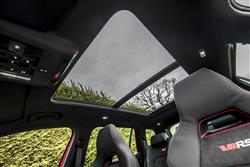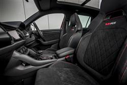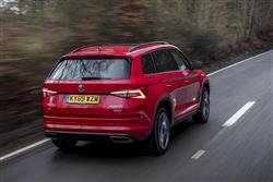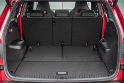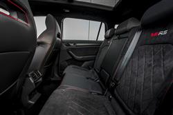 Skoda dressed the Kodiaq vRS carefully to match its premium performance station in life. So there are eye-catching 20-inch 'Extreme' alloy wheels, along with red 'vRS' badges on the nose and tail. Plus sleeker bumpers, big bore dual exhaust tips and gloss back finishing for the roof rails, wing mirrors, window frames and front grille. None of this does anything to disguise this SUV's quite prodigious size; at around 4.7-metres in length, it's one of the biggest VW Group models to be spun off the conglomerate's MQB platform. Inside up front, you get carbonfibre trim and the obligatory sports steering wheel which, like the gearshift gaitor, features red stitching. Plus aluminium pedals and sports seats upholstered in the same classy quilted microsuede fabric that also features on the door cards. There's a 9.2-inch centre-dash infotainment touchscreen. And Skoda included its 'Virtual Cockpit' digital instrument binnacle display, which can be customised based on the kind of information you want to view. This second row bench features all the versatility you'd want from this kind of seven-seat SUV, so the backrest reclines for greater comfort on long journeys and the base slides back and forth by up to 180mm. This vRS variant retains a third seating row - the kind of thing some performance SUVs dispense with. In the very back, you're quickly reminded that this is an SUV, not an MPV. Overall though, the third row space here isn't really any more restricted than it would be in any other mid-sized SUV of this kind. Out back with the powered tailgate raised, there's 270-litres of luggage room with all three rows in place. Most of the time though, Kodiaq vRS owners are probably going to be using their cars with the rearmost seats folded into the floor, an action easy and simple to complete. In which case there's 630-litres of space on offer with the middle row sensibly positioned. With all the seats flat, a class leadingly-large 2,005-litre space is revealed. So yes, this is about as practical as performance cars tend to get.