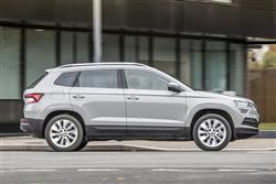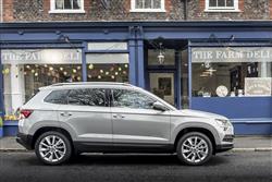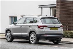If at first glance, you mistook this Karoq model for its larger Skoda Kodiaq stablemate, you're in good company: at first, we found ourselves doing that too. Get to know the styling of this more mainstream SUV a little better though and the differences between the two designs begin to become more readily apparent. For a start, it's a substantial 315mm shorter than a Kodiaq and significantly narrower and shorter too - though you'll find it much bigger in all these dimensions than the brand's previous Yeti model if you're graduating up from one of those. Behind the wheel, the design team delivered another very smartly turned-out Skoda cabin, the interior being beautifully put together, smartly designed and easy on the eye. Distinctive brand touches start with the grey-ringed instrument dials you view through the smart three-spoke wheel. And continue with the way that the cabin abounds with plenty of the company's famed 'Simply Clever' design features, there to make life a bit easier. Take the 'Jumbo Box' between the seats which incorporates a neat reversible tray that flips over to reveal cup holders, cubbies and ticket storage slots. And what other family car provides you with an umbrella beneath the front passenger seat? Infotainment's up to scratch too, courtesy of a classy glass-fronted monitor, supplied in 8-inch form on most models but also available in a larger, more advanced 9.2-inch 'Columbus' guise. Whatever your choice, there's standard 'Smartlink' smartphone-mirroring and the option of Skoda's clever 'Infotainment Online' and 'Care Connect' media connectivity packages. Enough on what it's like at the front of this Karoq. What about the rear, accessed through wide-opening doors. If you're trading up from the company's previous Yeti compact SUV, this is where you'll notice the biggest practical differences over what went before. As you might expect, there's a lot more leg room than there was in that previous model, though taller folk may still find their knees brushing against the front seatbacks. The real cleverness here though, lies in something Skoda's particularly proud of, it's 'VarioFlex' seating system. The 'VarioFlex' package replaces the usual rear bench with three separate seats that can individually slide, recline or be removed altogether. If you only need space for two, the centre seat can be removed, allowing the two outer chairs to then be pushed up to 80mm further in towards the centre of the cabin, creating limousine-like levels of shoulder room. The total space you'll actually get will depend on whether the variant in question has been equipped with the 'VarioFlex' seating package we were just talking about. If it hasn't, you'll get a 521-litre boot. But if, as we'd recommend, you do make sure that this feature is included on the Karoq you consider, you'll get a cargo bay that you can vary in size between 479 and 588-litres, depending on the position of the sliding rear bench. If you completely flatten the backrest, a 1,605-litre stowage area is revealed.
