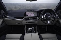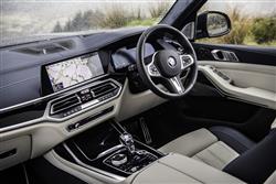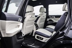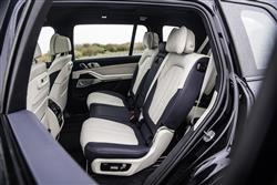 US, Asian and Middle Eastern buyers want their luxury SUVs to be big and very imposing, so the X7 is. If you want one here, that's what you're going to like about it. Is the huge over-sized front grille a step too far? Not if you take the view that there's simply no point in a car that's 5.15-metres long, 2-metres wide and over 1.8-metres high being aesthetically shy and retiring. This one certainly isn't. As is appropriate in such a large SUV, you climb up into the driver's seat of an X7 and find yourself positioned commandingly in a cabin that's high in quality but perhaps lacking a little in terms of sheer specialness. It's hard to fault the cabin ergonomics, which see you perfectly positioned on brilliantly supportive multifunctional 'Comfort' seats trimmed in stitched Merino leather. And viewing digital screen technology delivered by the 'Live Cockpit Professional' package that combines a 12.3-inch digital instrument cluster display with a centre-dash infotainment monitor of the same size, all of it accessible via touchscreen, the usual lower iDrive touch controller or voice control. There's some clever stuff incorporated into this sophisticated set-up, including gesture control and what BMW calls an 'Intelligent Personal Assistant', which works a bit like the 'Siri' or 'Google Assistant' systems you might use on your 'phone and is there to answer questions you can voice to the car as you drive it. Once you take a seat in the second row, you'll quickly appreciate the generous leg room on offer made possible by this car's lengthy 3,105mm wheelbase. Most X7s were sold in the standard seven-seat configuration, which gives you a three person bench. Your alternative is to get a car whose original owner specified the optional 'Six-Seater' package which instead fits out the second row with two individual 'Comfort'-spec seats similar to those at the front, each with their own armrests and cushioned headrests. That'll give second row folk more luxury and more room to spread out, plus it'll make it easier to get to the rearmost seating row. But of course it'll mean compromises in terms of seat-folding flexibility and, obviously, passenger capacity. On balance, we'd prefer to stick with a car fitted with the conventional middle bench. After all, it's not as if you're lacking luxury. You get exquisitely cushioned head rests, plus electric seat controls for the two outer positions adjust the back rests and move the powered seat bases through a range of 145mm. Right, enough with that. What about the third row? It's supposed to be 'adult-friendly'. Once installed in the very back, there's pretty much the same sort of space as you'd find in a large MPV. In short, what's on offer in the X7 is a first class SUV that doesn't demote third row passengers to third class travel. And the boot? Well the powered two-piece tailgate can be operated by gesture control and opens to reveal a cargo area that offers 326-litres (about the size of the boot of a Ford Focus), even when all three seating rows are in use. To make loading easier, you can lower the height of the air suspension using a button on the edge of the lowered tailgate panel. More buttons on the left hand side of the hatch aperture allow you to electrically retract the rearmost pews and virtually double the size of your cargo area. And you can electrically retract the second row bench too, which can if necessary fold in a 40:20:40-split, eventually freeing up as much as 2,120-litres of total capacity, assuming you've stuck with your X7 in its standard seven-seat form.