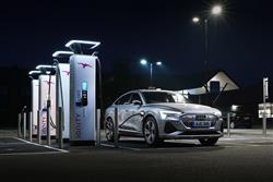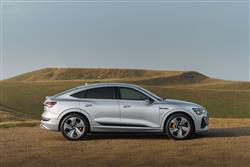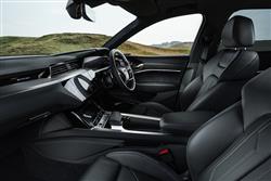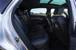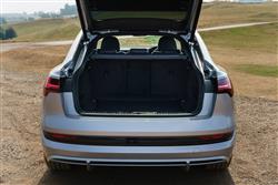 What we've got here is certainly a substantial piece of Ingolstadt real estate, over 4.9-metres long and sitting over 1.6-metres high, though there's plenty of panelwork sculpting to disguise the bulk, including the mid-level crease that flows through the door handles and a prominent upper swage line that emphasises the powerful rear haunches. The lower edge of the third side window rises towards the rear - a typical Audi Sportback feature. And between the upward-slanting lower crease and the lower side sills is a trim panel that's either black (with the standard e-tron Sportback) or silver (with the S model), either way supposed to draw the eye to where the battery, and thus the energy centre of the car, can be found. Nice touches if fitted include the optional virtual mirrors, 'L'-shaped pods that protrude on aerodynamic stalks replacing ordinary door mirrors; and the inclusion of charging flaps on both sides of the car behind the front wheel arches, which feature copper-themed e-tron badges and neatly open with the push of a button. As usual with modern Audis, the front end is dominated by the kind of huge octagonal Singleframe grille you might think an EV wouldn't need. This one, which has lower e-tron branding, is light platinum grey with vertical struts and if you look closer, you'll see that it's mainly enclosed, signalling the car's battery status. At the rear, as is usual with Audi's latest large models, a light strip connects the LED tail lamps to one another, emphasising the substantial 1,935mm body width. Which as you'd expect is the same up front as with the company's ordinary boxier e-tron large SUV. Which means that, like other more conventional large Audi models, you get two central MMI touch response displays that blend into vast swathes of piano black trim. You view another screen through the four-spoke wheel, this one a 12.3-inch 'Virtual Cockpit' monitor that includes a 'Power Meter' covering the car's charging and regenerative functions. The leather-stitched seats are superbly comfortable and position you fairly loftily - which is one of the reasons why forward vision is excellent. And there's plenty of interior storage, including a central open-sided compartment between the seats that's intended to have the feel of a light, sleek sculpture. It's unusual, much like the gear selector, which is operated by a hand rest which appears to 'float' above the console and is activated by a one-touch action conducted with either thumb or index finger. In the back, this Sportback's 20mm reduction in ceiling height might bother you if you're a 6-footer - your head will be brushing the immaculately crafted roof liner - but otherwise, it feels pretty spacious in the rear. As for cargo space, well there's a compartment under the bonnet, but since that's only 60-litres in size, we'll ignore it and focus on the boot area. You get a powered tailgate of course, which rises to reveal a 555-litre luggage bay for this Sportback body shape - which is 45-litres less than the ordinary boxier e-tron SUV body shape can offer. There's also a useful under-floor storage area. Fold down the rear bench (which folds conveniently in a 40:20:40-split) and 1,595-litres of capacity is freed up. That's 60-litres less than an ordinary e-tron SUV body shape.