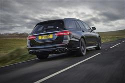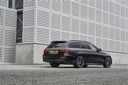 In saloon and estate form, the E 53 is marked out from humbler E-Class models by a bonnet with two distinctive power domes, plus there are large outer air inlets with two cross louvres - and a smart front apron finished either in silver chrome or high gloss black. There's a proper AMG vertically-slatted grille too, flanked by headlamps featuring the brand's advanced MULTIBEAM Intelligent Light System. In profile, the wings feature 'BITURBO 4MATIC+' badging and you get AMG side sill panels and rear privacy glass. The aerodynamically optimised wheels are bespoke too of course, with AMG lettering on the black calipers; you get tantalite grey 19-inch rims with a '5-twin-spoke' design on the standard 'Premium' model; or larger twin-spoke matt black 20-inchers on the plusher 'Night Edition Premium Plus' variant, which also gets a high gloss black finish for the mirrors and the waistline trim strip. The key identifying feature at the tail end is the round twin tailpipe trim, offered either in high-gloss chrome - or black chrome in the case of the 'Night Edition Premium Plus' variant. The pipes sit within a diffuser-style AMG rear apron. Both variants get a body-coloured AMG spoiler, which is subtly roof-mounted with the estate body shape. Inside, the E 53 gets a package of AMG-specific appointments, luxurious materials and the brand's MBUX infotainment system. The scene is set by branded sports seats in black Nappa leather, featuring either silver or red contrast stitching. And built upon by bespoke trimming (either black open-pore ash wood or carbon fibre), plus stainless steel pedals and AMG lettering for the floor mats and scuff plates. There's also a lovely multi-coloured ambient lighting system, with LED strips along the bottom of the fascia, on the door cards and along the side of the centre console that give the cabin a very special feel after dark. We're not sure that the post-facelift model's redesigned race-style AMG Performance steering wheel was much of an improvement. It's, shall we say, rather complex, with no fewer than 22 individual touch-sensitive controllers and two sliders on its four spokes. You'll need to get the handbook out. As with other E-Class models, the two displays for the instrument cluster and the central screen blend beneath a shared glass cover to form the so-called 'Widescreen Cockpit'. For the 12.3-inch instrument cluster, it's possible to choose between the three AMG display styles - "Modern Classic", "Sport" and "Supersport". The "Supersport" mode is particularly striking, with a central, round rev counter and additional information presented in the form of bars to the left and right of it. The MBUX central infotainment screen, also 12.3-inches in size and presented in this model with a bespoke AMG start-up screen, includes everything you'd expect, including one of the segment's best voice control systems and a navigation system using the brand's clever 'augmented reality' system. This is effectively a live camera feed of the road ahead overlaid with house numbers, road names, direction arrows and other useful bits of information that'll help you find your way. In the rear, passenger space is generous. If the front passengers have their seats at the lowest setting, you might find room for your feet slightly limited, but otherwise the rear foot wells are big and broad. The upholstery's supportively contoured too, holding you in a little more firmly than is usual, though that does mean a little less comfort for anyone who has to sit in the middle, legs splayed around the rather prominent central transmission tunnel. The boot gets automatic operation for the boot lid or tailgate. The saloon offers a 540-litre trunk - with the estate, that figure rises to 640-litres, which is more than you'd get from any other full-executive segment station wagon. If you need to take longer items, the rear backrest on both saloon and estate models usefully divides 40:20:40 so you can, if necessary, push longer items like skis through without disturbing rear-seated folk. If you flatten the rear bench, using the cargo sidewall levers, then on the estate model, 1,820-litres of space can be freed up.
