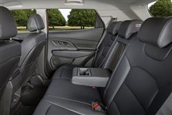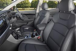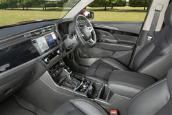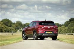 This 'C300' MK4 Korando design was easily the best looking SsangYong model we'd seen - which is important in a class where the majority of buyers cite style as the No.1 reason for purchase. Remove the bodywork here and most would guess at an established volume brand - which is exactly what the Korean maker was aiming at. As with other modern SsangYong designs, the key brand identifier is the so-called 'birds wing'-themed styling of the front end, which sees a silver upper grille bar arching down beneath angular headlamps that feature LED Multi-Reflector beams on top models. Chiselled bonnet character lines, three horizontal chrome slats across the lower intake and vertically-stacked LED front fog lamps complete the effect. At the wheel, the cabin is of much higher quality than you might expect. It's dominated by gloss black trimming which on top models is embellished by classy multi-coloured 'Infinity Mood Lighting'. Continuing the sophisticated theme is the 'Blaze Cockpit' screen package that's offered at the top of the range and on selected lower-spec models. This links an 8 or 9-inch centre-dash infotainment display with a fully digital customisable 10.25-inch digital instrument cluster which can be configured to show full-screen mapping. The centre-monitor includes 'Apple CarPlay'/'Android Auto' smartphone-mirroring and the usual DAB audio and Bluetooth functions, plus there's navigation and a reversing camera at the top of the range. Finding a comfortable driving position is reasonably straightforward thanks to a decent amount of seat and wheel adjustment. And there's plenty of storage space around the cabin. Right; let's consider a part of this car that we think might really sell it to you - the rear cabin. This is the only car in this class (premium brand models included) able to comfortably transport three fully-sized adults on the back seat for any distance. Long journeys are helped by the fact that the seat backs recline by up to 32.5-degrees, which will further aid head space for really tall folk. It's this rear seat space that could well tempt buyers of SsangYong's smaller Tivoli Crossover model into this larger Korando - and the same applies when it comes to luggage room. Once the tailgate is raised, a very decently-sized 551-litre space is revealed - that's a floor-to-ceiling measurement. With both parts of the seat back folded, there's an almost-flat cargo area rated at 1,248-litres in size.
