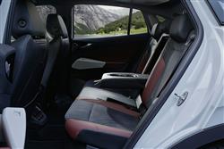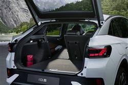Exterior design is obviously important to you if you're after an ID.5. Otherwise, you'd have paid less for an ID.4 instead. And the SUV-Coupe silhouette we first saw on the brand's ID.CROZZ concept car certainly delivers more pavement presence than you get with this car's showroom stablemate, embellished by roof rails and big wheels. Whether you think it's as 'powerful, confident and elegant' as Volkswagen thinks it is will be a subjective call. All the key drive stuff sits over the rear axle - principally the single-speed gearbox and the permanent-magnet synchronous electric motor that's been mated to it, both very efficiently packaged; Volkswagen says that both elements, together with the associated control electronics, collectively weigh just 90kgs and could fit into a typical gym bag. All of this powered by a high voltage battery that's been efficiently arranged in the underbody to save space. Which leaves nothing to sit at the front end but a few auxiliary units like the air conditioning compressor and of course the steering rack. At the wheel, there's no need for a gear lever, an ignition slot or a handbrake - and that's just the beginning of the things you'll need to adjust to, in a cabin designed around what Volkswagen calls an 'Open Space' concept. You sit quite high, on top of all those batteries, and the interior design has an airy but minimalist and rather clinical feel which Volkswagen tried unsuccessfully to lift by imprinting 'Play' and 'Pause' symbols on the two footwell pedals. Predictably, it's all the same as you get in an ID.4, which means there's not much in the way of switchgear and of course, you do without conventional instruments, all of this replaced by a couple of TFT displays, a little 5.3-inch one behind the steering wheel and a main 'Discover Max' tablet of 12-inches in size in the centre of the dash. Build quality is generally good but cheaper plastics betray the cost cutting necessary to undergird all that sophisticated EV technology. The gear selector is housed in a right hand protrusion from the instrument binnacle, though here, there's the additional novelty in the fact that the whole binnacle moves up and down as you adjust the wheel. Other adjustments are done using either touch-sensitive buttons (like the fiddly sliders for the climate system); or with voice control prefaced by the command “Hello I.D”. Rear cabin space was one of the things we really liked about the ID.4, but with 25mm less roof height, you might expect that to be compromised here. To some extent that's true. Headroom's compromised not only by the more swept-back silhouette but also by the fact that Volkswagen standardised a vast panoramic glass roof for ID.5 customers and the result is that anyone travelling in the rear that's over six foot tall will find their hair brushing the ceiling. Still, you'd expect to have to make a slight compromise in that regard to get this more stylish body shape. In terms of space of your legs and knees, as in the ID.4, it's all very impressive - as so often these days in a mid-sized EV uncompromised by the packaging needs of a combustion powertrain. Despite having the driveway foot print of a Volkswagen Tiguan, the brand claims interior space more akin to the larger Tiguan Allspace - and that's pretty much how it feels. It's also a wider cabin than you'd expect a car of this size to be able to provide and with no central transmission tunnel to obstruct things, three adults could actually fit reasonably easily into the back of this car. Let's finish with the boot. Once the wide hatch rises, the space provided, at 549-litres, is surprisingly 6-litres larger than that of an ID.4. The rear bench doesn't split flexibly 40:20:40 like it does in a rival BMW iX3, but Volkswagen does at least provide a ski hatch so that longer items to be poked through into the cabin. Flattening the 60:40-split rear bench frees up 1,561-litres of capacity loaded to roof height.