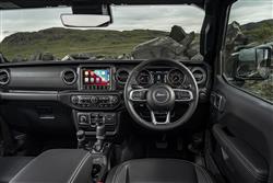 There were no visual changes for the MY 2021 version of this model, which by this point was only available in its longer-wheelbase four-door form. The Wrangler format is iconic: a simple boxy body dropped onto an old-style ladder-frame chassis with a folding screen, detachable doors and a removable roof. You don't mess with that. Or with the familiar frontage, which offers up the usual circular headlights and familiar seven-slot grille. Elsewhere around the car, all the usual Wrangler hallmarks are present and correct: the separate bumpers, the outboard spare wheel and extended wheel arches flared at angles similar to those of the original Willys Jeep. Back in 2018 at the original launch of this 'JL'-series design, the designers had sought to subtly evolve the look for this fourth generation model. That front grille for instance features a canted upper section and its outer slats intersect with headlights that feature full-LED beams from Magnetti Marelli. Even the vertical windscreen was different for the JL - in this form, it's not quite so vertical and has a different 4-bolt design at the top of the frame that allows it to fold down far more easily, though you've still got to get your socket set out to do it. Inside, there were no 2021 Model Year changes. Up-front, you're faced with a dashboard structure as bluff as the north face of the Eiger, but it's much more appealing than the boring plasticky layout that characterised the interior of the previous pre-2018-era 'JK'-series model. The coloured fascia frontage aimed to reference the metal-panelled dashboards used in much earlier Wranglers and the previous tightly sectioned centre stack gave way to a more open layout, though one absolutely festooned with knobs and buttons. Plus there's an 8.8-inch centre-dash 'Uconnect' infotainment screen and a further 7-inch TFT display between the conventional dials in the instrument binnacle. We should talk about the open air aspect; all 'JL' Wranglers come as standard with a three-piece Modular Hard Top with lift-off front panels. The rear section must be removed with a socket set. If you don't like the thought of that, you can get a car whose original owner specified a 'Sunrider Soft Top' that folds back either manually or electrically instead. With the roof fully down, the doors removed and the windscreen folded, the Wrangler driving experience really is like nothing else. In the rear, the 4-Door model's extra half metre of length might make possible a properly-sized rear seat, but it doesn't deliver doors that open with a very wide aperture. And once you're inside, it's not hugely comfortable either. We thought leg room might be an issue here, but actually we think you'd get more complaints about the rather upright backrests for occupants on a longer trip. Still, if your driver has removed the doors and you're travelling al fresco open to the elements, you won't care about any of that. Travelling in the back on an SUV isn't usually an experience to be in any way savoured but in a Wrangler, it can be. Let's finish with the boot. Once everything's opened up, there's a 533-litre boot which ought to be bigger but can't be because it's compromised by the tubular structural beams and the siting of a huge audio speaker on the right hand side. There's no ski hatch or 40:20:40 sear seat split for longer items, so if you need more room, you'll need to push forward the 60:40-split rear seats; annoyingly, you have to go round to the side of the car to release the backrests. That frees up 1,044-litres of space.