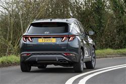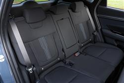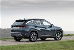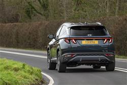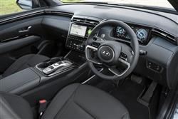 The MK4 version of this Hyundai mid-sized SUV is all about sharp angles, dynamic proportions and rich surfacing, the kind of thing you'll notice from a front end that really is guaranteed to get the neighbours taking a second glance over the fence. When the lights are off, the nose section appears to be covered in dark, geometric patterns - Hyundai calls these 'parametric jewels'. Some of them are made up of so-called 'parametric hidden lights', the daytime running lamps that cause parts of the grille to spring into life in jewel-like shapes with clever 'half-mirror' technology and twinkling LED illumination when the ignition is fired. It's all rather effective. More artful design features at the rear, where the brand badge arches into the tailgate glass and LED tail lamps feature an angled ribbed design with more parametric hidden lights. The profile perspective, its cab forward stance and swept-back shaping with black roof rails disguising a 20mm increase in length for this 'NX4'-series model, isn't conventional either. In fact, we're not sure we've ever seen a silhouette with quite as much of a riot of chiselled edging and conflicting creases as this one. With revolution prioritised over evolution outside, it would be a big disappointment to find a return to conventionality within. Fortunately, that's not what you're served up behind the wheel, where Hyundai promised us what it called 'an advanced and fully customisable digital experience'. In this case, what that gets you is a fully digital, configurable dual cockpit screen design that features a 10.25-inch instrument cluster display paired with a centre stack AVN touchscreen of the same size. It's all a massive improvement from the drab interior of the previous generation model and is complemented by a high centre console flowing into a centre stack that for the first time on a Hyundai was fully touchscreen-orientated. There's certainly lots to adjust to here. The usual cowl over the instrument cluster's missing; and for those not wanting a stick shift, Hyundai dispensed with an auto gearstick, favouring big Fisher Price-style silver centre console buttons instead. There's a curiously styled four-spoke steering wheel with unusual lower silver detailing. And, providing you avoid entry-level trim, there's no ignition key either; just a rather hidden silver fascia start button. Whether or not you really like all of this depends on how you feel about modern technology but whatever your perspective on that, you can't deny that the Tucson has much more of a premium feel in this form, quality materials and soft-touch surfacing everywhere you look. All-round visibility is a little compromised, but the seats are comfortable and there's plenty of cabin storage. The back seat has a slightly more spacious, airier feel than before and that's backed up by a measurement suggesting that passengers back here will enjoy another 26mm of legroom, with lots of space to slide your feet beneath the front seats. There's near-class-leading headroom too, with both attributes unaffected should you opt for either a full-Hybrid or a Plug-in drivetrain. We'll finish by considering the boot, which unless you've splashed out on a top trim level you'll have to raise yourself. The space you'll get within will depend a lot on the powertrain you've chosen for your Tucson. The Plug-in Hybrid variant offers only 558-litres of space - which is the sort of thing you might expect given the need for the under-floor battery system - but it's disappointing to find that the MHEV mild hybrid model most Tucson customers are likely to choose (which has a tiny battery) is almost as compromised, with 577-litres of space. For some reason, the full-Hybrid HEV variant manages to be a lot better in this respect, offering 616-litres - nearly as much as the completely un-electrified conventionally-engined base derivative (where it's 620-litres). Handy levers positioned just inside the tailgate opening allow you to retract the rear bench completely, which folds almost flat and releases up to 1,737-litres of space in the Plug-in model; it's 1,756-litres in the mild hybrid version, 1,795-litres in the Hybrid and 1,799-litres with the conventionally-engined model.