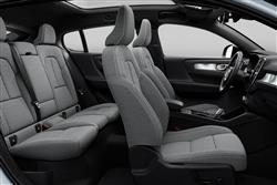The main visual difference marking out this Recharge Pure Electric XC40 model from its combustion counterpart is its blanked-off front grille, which is rarely a great adornment for an EV - and isn't here, despite changes in 2022 which saw this grille plate get a subtle frameless redesign. The bumper got a subtle restyle at the same time, gaining rocket-shaped corner cut-outs. Otherwise, with this Spring 2023 update, things remained as they had been at this model's 2021 launch. There was the usual 'robot-inspired' styling, plus a clamshell bonnet and piercing 'Thor's Hammer' LED headlights, that by this point had been embellished with state-of-the-art pixel LED light technology. You might do better identifying this Volvo's Zero Emissions BEV status at the rear; there's an identifying badge and of course, tail pipes are absent. Like any other XC40, this one rides on the brand's 'Compact Modular Architecture' platform, which is why it rolled down the same Ghent factory production line as its combustion-fuelled range stablemates. At the wheel, you get the usual cool Scandinavian vibe that by 2023 had helped to make this the best selling premium-badged compact SUV of its kind. Which means digital dials, a dose of Swedish minimalism and door bins bigger than any you'll have ever seen (because the door cards don't have to accommodate big audio speakers). The two screens do of course incorporate specific EV features. The 12.3-inch 'Progressive Driver Display' you view through the 3-spoke wheel has a speed meter on the left and a drive meter on the right, the latter showing you whether you're using battery charge or regenerating it. And the 9-inch centre console portrait touch screen can show a location map with marked charging points, along with charging and 'Driving' sections, the latter allowing you to select a 'One Pedal Drive' option that maximises the effect of regenerative braking. For this updated model, this central monitor also showcased Volvo's Android infotainment set-up which includes worldwide navigation to Google Maps, advanced voice recognition by Google Assistant and access to the Google Play Store for a range of in-car apps. The rear of the cabin is exactly as it would be in any other XC40 and headroom remains generous, even though the system battery pack is sitting right below your feet. Even the top model's panoramic glass roof shouldn't compromise head space too much unless you're exceptionally lanky. We're not so keen on the way that the angled style of the rear C-pillar might create something of a claustrophobic feel in the back for younger folk; if you've children, take them along on the test drive to make sure they'll be happy there. The central positioning of that battery pack means that boot space isn't compromised either. The standard powered tailgate rises to reveal 452-litres of it. There are some really nice convenience touches in the cargo area, principally a neat divider, which can rise and divide the space laterally to stop your shopping from sliding around. The hinges of this divider even stand proud of its top edge, giving you hooks from which you can hang shopping bags. Fold the rear bench forward and up to 1,328-litres of total capacity is revealed if you load to the roof. That's only 67-litres less than you'd get in Volvo's larger XC60. Because no engine is needed beneath the clamshell bonnet, Volvo used the space to create a 'frunk', a 31-litre space that's perfect for the two provided charge leads.