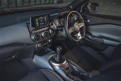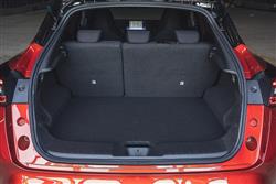 Yes, in this MK2 F16 form, the Juke does still look like either something dredged up from the abyssal depths of the ocean. Or a fun, friendly and futuristic little runabout. It all depends on your perspective. Whichever camp you're in, you have to hand it to Nissan for not losing its resolve here. It would have been so easy for them to water this design down so as to reach a wider audience. But as it is, buyers of the original model will immediately recognise this second generation version, with its exaggerated wheel arches, rising window line, strong shoulders and a squat rear end. All of which artfully disguises a slight size increase over what we had before - its 29mm wider and 75mm longer. Inside, if you remember the F15 original, you'll find that a few of the motorcycle-style touches of the original model are gone, but the cabin's of much higher quality and was just as personalisable as before. The sporty-looking 'monoform' seats with their integrated headrests position you a little higher up than in some direct rivals and (unlike in the original version) the steering wheel adjusts for reach as well as rake. Through it, you view a couple of clear analogue gauges separated by a good-sized screen. Anything that can't tell you will be covered off by a centre-dash 8-inch NissanConnect display, which was standard above entry-level trim and was equipped with plenty; 'Apple CarPlay'/'Android Auto' smartphone mirroring, plus voice control, NissanConnect Live information services and a rear view camera. Frontward vision is good; rearward visibility less so. And there's a reasonable amount of cabin storage. Nissan boated of an extra 58mm of leg room in the back for this MK2 model, enough to make the difference between what previously felt very much like a 'kids-only' space and one that with this F16 design feels like it could take a couple of adults for short-to-medium-length journeys without upsetting them too much. Younger folk will be pleased to find a USB port added to the back, near the central cubby. And the centre transmission tunnel isn't too high, so if you really do have to squeeze a third person in, that ought to be possible without the central occupant needing a trip to the osteopath afterwards. The 422-litre capacity is 20% greater than what was on offer before. For the boot, most models get a standard adjustable-height floor, which in its lowest setting will allow you to carry some really quite tall items.
