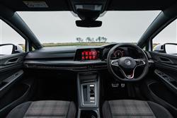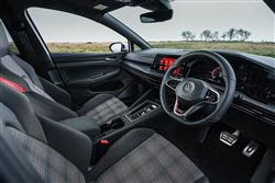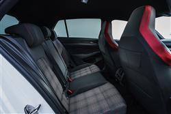 Because with this eighth generation GTI model, styling chief Klaus Bischoff and his team had to keep basically the same structure as before, they were a little limited in how much could be done to fundamentally change the design of this car, by now only offered in a single five-door hatch body style. Within those constraints though, quite a lot was done here, much of it aimed at creating a low visual centre of gravity, primarily achieved through the wide air intakes at the front and the striking shoulder line. You'll note the main differences at the front, where traditional model line touches - things like the classic 'GTI' badging and the red strip across the radiator grille - are blended into the lower, more menacing nose that was a feature of this eighth generation Golf design. Full-LED headlights fitted with the brand's intelligent 'I.Q. Light' matrix beams were standard and an LED strip in each headlamp mirrors the red grille line when the daytime running lights are activated - or when the driver approaches with the key. You might find the wide lower grille and fairy-light LED front foglamps to be a little fussy, but there are some undeniably nice touches - like the way the radiator grille illuminates as a continuation of the headlamp LED daytime running light strip. Much less is different from the side, where you might pick up the fact that this variant rides 15mm lower than a regular Golf. The profile is characterised by three elements; this 'GTI'-branded front wing signet badge; wide black lower side skirt sills featuring a splitter design similar to that found on race cars; and unique 18-inch 'Richmond' alloy wheels with red brake calipers, which could on request be upgraded to larger 19-inch rims (the biggest ever fitted to a Golf GTI). Full-LED tail lights feature at the rear and the GTI lettering was positioned centrally under the Volkswagen emblem. This hot hatch variant appears to be even flatter than less powerful Golf models thanks to a roof spoiler that extends significantly towards the rear and is painted in vehicle colour at the top, with glossy black at the bottom. Lower down, a sporty diffuser distinguishes this car from lesser Golfs and, in keeping with GTI tradition, this eighth generation model's exhaust system had one tailpipe on the left and one on the right. Inside, there's certainly plenty here that'll be familiar to Golf GTI regulars; like the GTI sports seats in tartan with their black side bolsters and the three silver double spokes on the dished sports steering wheel. The manual model got a dimpled 'golf ball'-style gear knob too. Despite this, the over-riding impression for loyal owners will probably be of just how different everything is. Not really because of freshly added detail touches like the pulsating starter bar, the extra steering wheel touch controls or, on the DSG auto variant, a much shorter, stubbier drive selector. No, what was primarily different here lay with the adoption of what Volkswagen called a completely 'digital' cabin. As on an ordinary MK8 Golf from this period, this came courtesy of the brand's so-called 'Innovision Cockpit', which fuses a 10.25-inch digital instrument binnacle screen with a 10-inch centre-dash screen. With the 'Digital Cockpit Pro' instrument binnacle screen, the virtual gauges were embellished in this hot hatch model with stylised GTI-branding and a smart honeycomb background. This display is a little smaller than the 'Virtual Cockpit' screen you'd get in a rival Audi S3, but it works in much the same way, a 'View' button on the steering wheel offering a choice of four graphic layouts. Anything this instrument binnacle display can't tell you - and much that it can - will be covered off by that 10-inch centre-dash touchscreen we mentioned earlier, which was a decent step forward from the 'Composition Media' monitor fitted to the previous generation model - which already was better than rival set-ups. This replacement 'Discover Media Navigation' system put this Golf even further beyond its competitors' reach in this regard, when it comes to clarity and ease of use. You'll have to get used to a few things about it though, primarily the curious slider at the bottom of the screen for volume control, which not everyone likes. Enough with screens and digitalisation. What else do you need to know here, apart from the fact that as usual on a Golf, build quality's impeccable. Maybe that the ergonomics are predictably faultless. And that the seats (which come with integrated headrests and lumbar adjustment) are brilliantly supportive. The combination of these tiny front quarterlights and slim A-pillars mean good frontward vision too. Over-the-shoulder vision isn't quite as good; the large C-pillars rather get in the way, so it's just as well that rear parking sensors were standard-fit. A rear view camera wasn't. In the back, thanks to the extra 16mm of length between the wheels with this MK8 design, there was a fraction more legroom than in the MK7 model, so a pair of six-foot adults could be accommodated reasonably here, providing front seat occupants don't slide their seats fully back. As for the boot, well your sales person might reference the fact that the 381-litre space provided here is 40-litres more than you get in a rival Ford Focus ST. Pushing forward the conventional 60:40 split-rear bench you get frees up 1,237-litres across a load area that'll be virtually flat if you have the boot floor in its upper position.