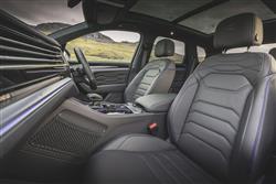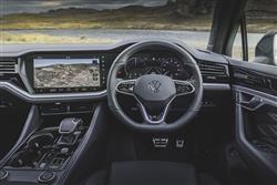 There are no significant changes under the bonnet with this improved Touareg R. That evocative badge suggests a rorty exhaust, neck-snapping performance and the usual extra 'race' R drive mode but actually, a Touareg R doesn't have any of that, nor is it intended as any sort of credible alternative to a comparable BMW M or Mercedes-AMG SUV super-sports model. And with basically the same turbo petrol V6 as the ordinary eHybrid model (just boosted in power to 462PS) with the same modest 450Nm torque figure, it's equally misleading to present it as any sort of follow up to the memorable 5.0-litre V10 diesel-powered Touareg R50 model of 2007, which had so much torque that Volkswagen UK once hitched it up to tow a 155-tonne Boeing 747. What we've got instead of all that is a flagship variant that suits likely customers rather better, if the sales figures for this variant so far are any guide. Keeping that sales momentum going with this updated Touareg R might be difficult though because disappointingly, as with the ordinary Touareg eHybrid, the PHEV powertrain in use here is the older VW Group PHEV package based around a 2.9-litre V6, a 138PS electric motor and a 14.3kWh battery. We'd hoped that Volkswagen would have taken the opportunity presented by this facelift to update this set-up to the far more modern Plug-in Hybrid system lately adopted by the updated version of this Touareg's Porsche Cayenne cousin, which in E-Hybrid form uses a 3.0-litre V6, a completely new 176PS electric motor and a much bigger 25.9kWh battery. Which is why that car can go up to 46 miles between charges, while both PHEV Touaregs are limited to just 31 miles. A rival Mercedes GLE 400e PHEV can go up to 70 miles on battery power. So yes, this Touareg's Plug-in tech is some way behind the tech curve. But you might still like one. Despite nearly two-and-a-half tones of kerb weight, it feels reasonably responsive - in 'Sport' mode anyway, with 62mph dispatched in 5.1s en route to 155mph. That's with the 'Hybrid' drive setting engaged; switch to 'Electric' mode and the top speed on battery power alone will be 84mph. The switch between the two drive sources is reasonably smooth but certainly noticeable and you'll particularly hear the engine if you take up the (rather inefficient) 'Eco' drive mode option of using that V6 combustion unit to act as a generator for the battery. Another feature carried over from the regular eHybrid model is the 'reserve charge' feature that allows you to preserve battery charge for when you might need it at the end of a trip. Air suspension is standard but disappointingly given the handling agility you'd usually want from a Volkswagen R model, this one can't be ordered with the rear-axle steering and Active Roll Compensation systems we mentioned earlier; the PHEV packaging doesn't allow for it.