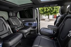 Here, a 100kWh lithium-ion battery develops a 201hp total output with 362Nm of torque and can offer a claimed driving range of up to 222 miles between charges. 62mph takes 12.1s. As with most EVs, the top speed is rather limited - in this case to 98mph. Otherwise, this EQV will be much like any other V-Class to drive. Numerous engineering changes differentiate this Mercedes MPV from the Vito commercial model it's based on, alterations having been made to such things as the spring rates, support bearings, strut towers, dampers, anti-roll bars and bearings to create more car-like standards of ride and handling. Most importantly, standard 'Agility Control' adaptive suspension has been added in, a set-up able to tweak the damping to suit road conditions. It's not enough to make this feel like an S-Class luxury saloon - especially not if you're in a version of this model fitted with the largest 19-inch wheel rim size - but given what the German engineers had to work with, the supple, well-controlled quality of the ride is very commendable. And there's certainly a much lighter, airier feel than you'd get in an S-Class - or any other boardroom-level limo come to that.