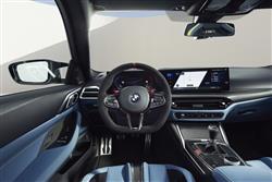 There are a few engineering headlines with this revised G82 model. First, you can no longer have it in rear-driven form - but most customers want the xDrive version anyway. Second, BMW's S58-era twin turbo 3.0-litre straight six gains 20bhp - up to 530hp. That's for the M4 Competition variant, which as before is the only M4 variant our market will get. Peak power is now delivered at higher revs - 6,250rpm, rather than 5,600rpm. Torque is still rated at a prodigious 650Nm, but is held for an extra 230rpm. The performance figures look little different, with 62mph from rest taking 3.5s en route to a limited top speed of 155mph (mainly to give BMW an opportunity to sell an optional 'Drivers Package' which lifts it to 180mph in combination with Z-rated tyres). The UK still doesn't get the manual gearbox option you can have in Europe. So as before, the M4 Competition has to be had with a paddleshift 8-speed torque converter automatic with M Drivelogic software. The standard AWD system certainly makes this BMW more seasonably usable; it offers three driving modes - '4WD', '4WD Sport' and (with the Dynamic Stability Control system disabled) '2WD', in which form most of the torque goes to the rear. Three characteristic maps are available via the M Setup menu for individual adjustments of the Adaptive M suspension, which comes as standard. Further components of the suspension technology include M Servotronic steering and the integrated braking system, which is utilised in conjunction both with the standard M compound brakes and the optional M carbon-ceramic brakes.