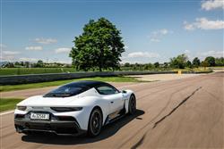 As you set off, there's a satisfying exhaust crackle from the twin turbocharged V6 behind your head. Maserati engines are no longer sourced from previous partner Ferrari. This one, a 3.0-litre powerplant known as 'Nettuno' (Italian for 'Neptune') was entirely developed in-house and puts out 630hp to the rear wheels via an 8-speed auto gearbox borrowed from the current Chevrolet Corvette. You select gears via huge shift paddles off the steering wheel and a rotary controller offers four drive modes - 'Wet', 'GT', 'Sport' and 'Corsa' [which is the race mode]. Two levels of damper stiffness feature in each of the drive setting. Helped by launch control, the MC20 is brutally quick off the line, dispatching 62mph in just 2.9 seconds. 124mph passes in just 9 seconds on the way to a top speed of 203mph. Whether you'll like the dramatic orchestral accompaniment as you go quite as much might depend on how much of a Maserati loyalist you are. The elegant roar of the brand's past normally aspirated powertrains is replaced here by an altogether different melody of turbocharged whooshes and guttural barks. Which is all very supercar-like, but Maserati says that its also developed this car for everyday driving and the supple quality of ride really reflects that; you can enjoy this car as much on a long distance GT trip as on your favourite winding back road. Even more pleasingly, this car stops as it goes thanks to standard carbon ceramic discs - 330mm at the front and 350mm at the rear - which work with calipers that have 6-pistons at the front and 4 at the rear. Through the turns, the MC20 loves to change direction - like a shark turning towards a meal, but without the track refugee nervousness that you might get in a rival McLaren or Lamborghini of this kind. It's just everyday more usable. Despite quite a prodigious kerb weight of well over one and a half tonnes, the Italian maker's really nailed this, with traction through the turns aided by a mechanical limited slip differential you can, on request, swap out for an even faster-reacting electric system.