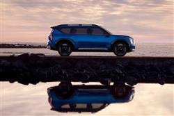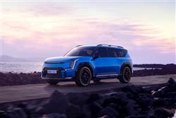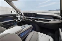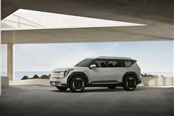 It doesn't seem likely that a family seven-seat SUV that looks like this will accelerate to 62mph in just 5.3s, but that's what the twin motor AWD 378bhp EV9 variant that most customers will choose manages. If, understandably, you can't see why a huge family wagon like this needs to go that fast, then Kia will offer you a base spec single motor rear-driven 'Air' version with 200bhp, which is considerably more sedate, making 62mph in 9.4s. That tops out at 114mph (10mph less than this Twin Motor EV9) but uses same big 99.8kWh long range battery, which takes the car 349 miles in 'Air' form - or 313 miles in the AWD model. The flagship version is the GT, which uses the same big battery but mates it to a more potent 515bhp drivetrain and can go up to 280 miles on a charge. Predictably, like any car of this kind, any EV9 is a big thing to manoeuvre about, especially around town and on narrow country roads. Still, at least there's less body roll than the slab-sided looks lead you to expect, helped by the low-down central siting of the enormous 566kg battery pack beneath the floor - positioning that considerably restricts any pretensions this Kia might have otherwise had towards off-road prowess. Steering feel is accurate but quite lifeless, with feedback one of the parameters you can control via the various drive modes - 'Eco', 'Normal' and 'Sport', plus a configurable 'MyMode' setting. Because there's no adaptive damping, these modes can't affect ride quality but Kia does provide standard self-levelling rear dampers. There are also six brake regeneration settings, which can be operated by the steering wheel paddle shifters. Impressively, the EV9 can tow 2,500kgs (as much as a Range Rover Velar); can be had with Level 3 autonomous drive technology; and can be parked remotely from its key fob.