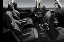 Although the C4 Picasso's athletic stance is the first thing to catch your eye, the second is the wide-angle panoramic windscreen that rises up and over the front seat occupants, doubling vertical visibility in the front to seventy degrees compared to 35 degrees in a standard MPV. Previous to this car's arrival, Vauxhall may have already offered a similar thing as an option on the MkIV Astra but this was the first time it had been fitted as standard to an MPV and the effect is just stunning, the sheer acreage of glass in front of the driver being at first a little unnerving. It's almost like the cockpit of a jet fighter. By slimming down the windscreen pillars, the effect of airiness and front visibility is increased still further. It's not just a styling affect either, the added field of view making it easier to spot motorbikes, cycles and pedestrians coming while preventing the usual craned neck when negotiating small roundabouts. I'm not sure if someone at Citroen has been getting a backhander from a glass manufacturer because the C4 Picasso also features the biggest sunroof in its class, the extensive side windows too help edge it towards having the largest glazed area of any mini MPV. All of this glass means that the vehicle needs a seriously punchy air-conditioning system to prevent it become a mobile propagator. The C4 Picasso utilises its available space very well. That wheel at each corner stance doesn't just look good, it also maximises space for the all important passenger cell. The boot has a 500-litre capacity which is about par for the course for a five-seater vehicle. Fold the rear seats down and there's a massive 1.734 litres of available space. The Grand C4 Picasso packages three rows of seats into a car 4.59m long (for reference a Ford C-MAX is 4.33m long, a Volkswagen Touran measures 4.39m, a Toyota Verso 4.36m and a Vauxhall Zafira breaks the tape at 4.46m) but the ingenuity of manufacturers in reducing the day to day impact of these compromises is where they earn their corn. The most common solution is to sacrifice a little room in the rearmost row and target these as 'occasional' seats for kids. The Citroen offers more space in the footwell on the rearmost set of seats although the raked roofline takes its toll for taller passengers. The more important middle row of seats reaps the benefits and offers more leg and elbow room than any of its competitors. With the vehicle configured as a five-seater, this car provides 576m of loadspace beneath the parcel shelf. Lose the second row of seats and there's a colossal 1,951 litres of room to play with. Many customers will be swayed by a showroom demonstration of how easy or otherwise the seats are to fold and the Grand C4 Picasso looks set to score in this department too. The second and third rows of chairs can be folded away under the floor without the need to remove the headrests to provide a flat surface that's ideal for loading. The whole design is a good deal more intuitive than the system used on the Vauxhall Zafira. Access to the back seats is good as well. Press a control on the edge of the outer middle seat and the seat cushion flips up to the seat back, the seat then slides against the back of the one in front. No more clambering with muddy feet over the middle row of seats or tearing the pockets off your trousers trying to lever yourself through a minuscule gap.