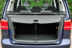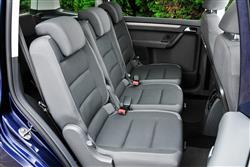 Stylistic surprises are rarely forthcoming when Volkswagen unveils an MPV and so it was that in second generation form, this Touran borrowed further from the design language already used by its maker on everything from a Polo supermini to a People Carrying Sharan. With this MK2 model, the German designers managed the unusual feat of changing every body panel bar the side doors, while still creating a look that nonetheless, appeared broadly the same as this car's predecessor, if cleaner and more purposeful at both front and rear ends with a sleek 0.29 drag factor. It was much the same inside, where everything was changed - yet nothing was different, exactly as many satisfied owners wanted. So buyers graduating from the previous generation version got restyled dials, a smarter three-spoke height and reach-adjustable steering wheel and a revised switchgear layout for the climate and entertainment functions. But the same classy cabin that ignored the fancier approach favoured by rivals and worked much better for it. At the business end, Volkswagen's marketeers rather ambitiously promised 'over 500 different combinations of seating'. You may disagree. Access to a cabin that gains plenty of light from the large windows is via side doors that, unlike some obvious rivals, open conventionally rather than sliding back and forth. But sliding back and forth to optimise legroom is certainly something you'll be able to do in the three individual chairs that make up the second seating row, positioned relatively high so children can see out of the bigger windows more easily. Unlike the larger Sharan, these seats can't neatly fold into the floor when you're not using them. For maximum carriage capacity, you have to carry them out and store them in the garage, so it's just as well that at 17kgs, they're not too heavy. When in situ in the car, they do fold in half though and the advantage of that if there are only two people in the back is that the middle seat can create a useful centre table. Or you can take it out completely and slide the outer two seats sideways and inwards to create limo-like elbow room. Neat. Behind, there are a couple of extra third row seats, adequate for occasional use by smaller adults over short journeys but really designed for children. Some original buyers deleted these at the point of original ordering in order to create more bootspace. Talking of bootspace, there really isn't much - just 121-litres. If that's a problem, you really should be looking at a proper large 7-seater MPV like Volkswagen's Sharan. Still, with the 3rd row folded into the floor, you do get 695-litres if space - or as much as 1989-litres if you fold the second row seats in half, with more again on offer if you lift them out completely. Just as important for families are the various storage compartments dotted around the car for smaller items - 35 in total - including storage compartments in the floor and in the roof console, trays under the front seats, a lidded compartment on top of the dash, door bins that will accommodate a 1-litre bottle and more cupholders than you'd find in the Real Madrid trophy room.