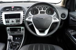 Perhaps it's appropriate that apart from the badge, there's nothing very American about the look of this car. After all, in the modern era of Fiat Group ownership, there's nothing very American about Chrysler and we can't help but think that to be a good thing. We've had quirky compact cars from the brand in the past but nothing very avant garde: nothing like this. It has a rather unique style, originally penned by Frank Stevenson who would later become Design Director for McLaren supercars, a man also well known for his work on distinctive models like the MINI and the Fiat 500. Here again, there's something that'll make the neighbours peer over the hedge into your driveway, extrovert swooping lines highlighted by radically raked side windowsills. Above them, there's a curvy floating roof fractionally suspended above the top of the C-pillars and flowing back into a tail section that wears darkened glass like a pair of sunshades, framed by slim LED tail light clusters. It won't be to everyone's taste, but it certainly makes your average Focus or Astra look very dull indeed. Under the trendy two-tone panelwork and sharply-creased surfaces lies a Fiat Bravo platform that's been extended by a wheelbase 100mm longer, creating a car that inside, is a lot bigger than it looks, something you notice most taking a seat in the rear. The most notable feature here is a rear bench that can slide backwards or forwards by up to 150mm to prioritise either legroom of rear luggage space. Push the seat right back and it really is very spacious indeed: a six foot four inch passenger could comfortably sit behind someone of the same height. If there's a more comfortable family hatch-class car for rear seat passengers on the market, then you'll struggle to find it. Better still, you can also recline the backrest by up to 25-degrees for greater comfort on longer trips. If on the other hand, you're prioritising bootspace and push the bench to its most forward position, then lifting the rear hatch and negotiating the rather high loading lip reveals a massive 465-litre space: compare that to the feeble 316-litres you get in a Ford Focus or the 350-litres you get in a Golf. Even if you pull the seat back for limo-like legroom, this Delta can still offer more space than those rivals, with a healthy 380-litres on offer. Under the boot floor, there's a hidden compartment for valuables and of course you can push the 60:40 split-folding seat forward - unfortunately, it doesn't fold quite flat - to reveal up to 1190-litres of fresh air. At the wheel, the designers have attempted to imbue this car with an upper class air, promising the sort of high end materials and build quality downsizing buyers will be used to in compact executive cars. So materials such as leather and suede-like Alcantara are used extensively, at least on plusher models. Even more basic trimmed variants feel quite nice thanks to the use of Benova, a soft premium textile used previously only by more prestigious brands. Flagship variants even get a dashboard trimmed in soft Poltrona Frau leather. It's all very nice but the basic design around the cabin doesn't have the hewn-from-granite feel that you'd find in something German - or the high-tech of a French or Japanese rival. Maybe that's a good thing: this sector needs something a bit different. But it's also true to say that this cabin could do without the cheaper plastic fittings - the handbrake for example - that are unwelcome reminders of just how affordable this car actually is. Ignore them: enjoy the little touches. The chrome-trimmed door handles, the 'Chrysler'-logoed head restraints, the slow-sprung return on the glovebox and grab handles. And relax into sensible luxury.