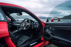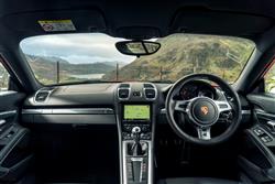 Does it look like a 911? The uninitiated might think so but visually at least, the '981' series Cayman is no longer a lesser, rather clumsy copy of that car. Your eye's immediately drawn to the bi-xenon headlights of the sleeker front end but the bigger changes are to be found further back with the higher haunches, the more prominent wheelarches and the swept-back roofline that together make this model a more distinctive thing than its predecessor. Reducing the rake of the rear screen and pulling its base further back has done wonders for the shape and it also helps that, unlike with the previous model, the indented doors weren't shared with the 911 and so better suit the completed design. The overall result is all muscularity and purpose. The whole idea with this car's second generation re-design was to put it on the same lightweight architecture that underpinned its Boxster and 911 stablemates - which is why, despite being a bigger thing than its predecessor, it actually weighs less thanks to extensive use of aluminium in the chassis, coupled with magnesium and steel where it's needed. A good example of the ceaseless development quest for efficiency can be found in the rear boot lid, emphasised by a distinctive blade spoiler that cuts across the rear light clusters. The lid is fashioned from aluminium and less than half the weight of the previous part. Lift it and you might be surprised to find how much space this car can offer behind a mid-mounted engine layout that's always been a big plus when it comes to practicality - though your service technician might not immediately agree. There's an expanded 275-litre space on offer here which, when combined with the further 150-litres you get under the bonnet in the front, provides a 425-litre total that's actually more than you get in a Volkswagen Golf. A two-seater Porsche sportscar that carries more gear than your average family hatch? The surprises keep on coming. There aren't too many of them when you get behind the wheel mind you, unless you count the fact that despite a lower roofline, there's actually more headroom than the previous version of this car could offer thanks to a lower mounting position for these surprisingly broad seats. The cabin's essentially the same as you'll find in a comparable '981' series Porsche Boxster - though that's no bad thing, with the same standard of fit and finish you'd find in a 911 costing twice as much. Unlike that car, you only get two seats. Those that see the 911's two cramped rear berths as irrelevant should swap from one car to the other for a week and see how often they throw a jacket or briefcase in the back or carry young children. Get yourself comfortable and, if you're familiar with previous Cayman models, you might notice that you sit a little further back from the controls, this contributing to a feeling of greater space in a re-designed cabin that really is more roomy thanks to a 60mm wheelbase increase. The usual bulky centre console arrangement was tidied in this design by fitting an electrically operated handbrake and also by moving the cup holders off to a slot by the glovebox. The dashboard, with its tapered centre console, proved to be a big improvement and if you've opted for a car fitted with the Sport Chrono package with its smart little timer, you'll find that dial neatly incorporated into the dash rather than being perched atop it like an afterthought (as was the case with the previous model). There are a few ergonomic issues: some of the buttons you use fairly often require you to take your eyes off the road to search for and operate. Likewise, the big central screen relegates the heater controls to a rather cramped position underneath, so they can be a little awkward to use. Overall though, we're talking here of an interior that feels impressively up-market. Peer through the chunky sports steering wheel and you'll find that, as with all the brand's models, a central oversized rev counter commands your attention, a silver finish marking out the 'S' model. To its left is a speedometer with spectacularly unhelpful 25mph increments. To its right is a VGA screen masquerading as a dial but actually displaying wither trip computer functions or a sat nav display if the car in question has been fitted with the expensive Porsche Communications Management system.