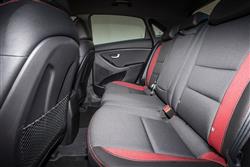Hyundai wanted this Turbo model to be a little understated but it still needs to look the part. So the front grille gets a chromed border and there are bespoke LED daytime running lights, along with powerful twin exhausts and lovely five-spoke 18-inch wheels. You also get a lower silver splitter as part of a sports bodykit that includes a neat roof spoiler. The Turbo was the only model offered in the MK2 i30 range to be available in 3-door as well as in 5-door form, but it couldn't be ordered in Tourer estate guise. And inside? Well true, the interior might not quite have the build solidity of a Golf or the flair of a Focus but in some respects, it's arguably a more interesting place to be than either of those cars. Add in this variant's Turbo tinsel - alloy pedals, a red gearknob and red-stitched leather-effect trim for the door panels and the edges of these red and black sports seats - and it feels very nice indeed. Yes, the splashes of metallic brightwork you'll find around the dash may clearly be painted plastic but they've been carefully chosen and the floating silver spines that line the edges of the centre console are stylish and neat. They frame a smart set of ventilation controls - illuminated in a ghostly blue - that have been moved further up than they would normally be on a car of this kind so that they fall to hand more easily and free up extra storage space in front of the gearlever. There are plenty of other cubbies and compartment for clutter too, including decently-sized door pockets that will each take a 1.5-litre bottle. There's lots of room for occupants too: Hyundai boasted of significant increases in leg, shoulder and headroom for front seat occupants when this second generation i30 model was first introduced. Fit and finish from the Czech factory is also excellent - to the point where the soft-touch textures on offer around the dash show a lot of better established brands how it should be done. Only the shiny steering column stalks betray Hyundai's budget brand origins, sitting in stark contrast to the classy excellence of the 7-inch infotainment touchscreen that gets satellite navigation as standard. Through the multi-function reach and rake-adjustable wheel, you glimpse a centre digital information display flanked by two quite deeply cowled but clearly presented dials, each with a smaller integrated circular gauge, in the rev counter for temperature and in the speedometer for fuel. So the instruments are clear - and so is all-round visibility - or at least it is to the front and to the side. Glance rearwards and your view is slightly marred by the small, high and narrow rear window. In the rear, the 5-door model is comfortable for two, but much less accommodating for three thanks to a raised centre seat cushion. Still, that's the case with most cars in the Focus-sized family hatchback segment. Three kids should be fine though and if you do have to take a trio of adults, getting them in will be made easier by the way the i30's designers have managed to reduce the size of the central transmission tunnel. Rear passengers will also appreciate the provision of their own air vents, though they might be rather less keen on the rather small side windows. Out back, there's a 378-litre boot. That offers a middle ground in terms of family hatch class carrying capacity. In other words, it gives you about 25% more space than you'd get in a Ford Focus ST but around 25% less room than you'd find in, say, a Peugeot 308 GT. Ultimately though, we're talking here of a cargo area that should be quite sufficient for the needs of most likely buyers, similar in size to that you'd find in key rivals like Vauxhall's Astra SRi, SEAT's Leon FR and Kia's cee'd GT. If you need more room and want to push the rear bench forward, you'll find that instead of the backrest merely flopping onto the seatbase, the rear seat cushion base flips up properly to facilitate an almost flat loadbay with up to 1316-litres of fresh air.