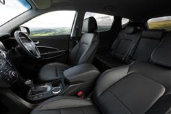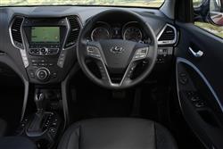 The Santa Fe is one of those cars that has become progressively better looking throughout its existence. The first generation model of 2001 was a distinctly odd-looking thing, with deeply concave flanks that looked as if it had been reversed into and a rather plasticky interior that could be specified in disturbingly uniform shades of brown. The second generation car that arrived five years later was a massive improvement, with a high quality cabin and a more mature styling treatment, although it lacked a little something in the personality stakes. This third generation car though, hit all the right notes. Here's how. The front end features a big grille and a high pedestrian-friendly bonnet line, with all of the lights and intakes a stylised trapezoidal shape that offers up an agreeably expensive look. Wider aesthetics were apparently influenced by Hyundai's so-called 'Fluidic Sculpture' design language, developed in this car with what the company calls a 'Storm Edge' concept supposed to capture the 'strong and dynamic images created by nature during the formation of a storm'. Moving round to the side, you'll see a sharp detail line that runs through the door handles and gives shape and tension to the flanks, ending up at the rear light clusters. There's also a sharply rising waistline that gives the car the sort of wedgy profile that's more reminiscent of the latest breed of crossover vehicles. There are plenty of neat touches- like the deep doors which cover the side sills to keep them clean so as occupant's clothes aren't soiled on entry or exit. At the back you'll find twin tailpipes and a hexagonal mesh set into the lower sections of the bumper to give it a purposeful look and feel. Jump inside and the good news continues. We're getting used to some very smart Hyundai interiors these days and the Santa Fe doesn't deviate from that script one iota. There seem to be quite a variety of materials used on the fascia but the overall look and feel is attractive, the dash being dominated by a central screen flanked on either side by big air vents. Then you've got stereo and ventilation controls below, with quite a few of these functions replicated on the steering wheel. The four-wheel drive running gear controls are mounted just to the right of the steering wheel. Since the wheelbase of this model is the same as its predecessor, you'd be forgiving for assuming that it's pretty much the same size inside. You'd be wrong. A marginal increase in overall length enabled the designers to conjure up an extra 45mm of middle seat knee-room - and there's 11mm more headroom. It also helps that the three-berth bench can slide backwards and forward to prioritise either space for legs or luggage behind. If you've gone for a seven rather than a five-seater model and have the third row of seating, you'll quickly find that getting to it could be easier. The problem's caused by the fact that the second row seat base doesn't lift up and tumble forward: all you can do is pull forward the backrest - which leaves a rather tight gap through which you have to squeeze yourself. Fine for kids but a little awkward if it's granny being taken for her Sunday trip to the garden centre. Once you're in place though, room at the very back isn't too bad for adults, providing the journey isn't excessively long. On the plus side, those rearmost seats do fold very neatly away into the floor, which means a decent amount of space in the boot when you're travelling in five-seater mode. Luggage space was increased by 37mm in depth over the previous generation model, yielding a capacity of 534-litres with the front five seats upright. Seven-seater models get standard self-levelling suspension to deal with heavier loads.