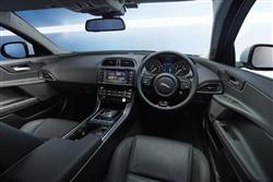 As its predecessor the MKII model was in the Sixties, this XE is unmistakeably a Jaguar, its upscale proportions delivering the kind of dynamic and purposeful look needed for success in this segment. It's unmistakeably a modern Jaguar too, so there are few of the retro touches that have so characterised and maturely pigeonholed some of the brand's other modern era designs like the S-TYPE and the X-TYPE. Instead, the XE echoes the styling approach first established by its larger XF showroom stablemate, with an aggressive grille, a strongly-sculpted bonnet, a steeply raked windscreen and a rising waistline. The resulting shape catches the eye - and cleaves the air like no Jaguar before it, registering a phenomenally low 0.26 drag coefficient. It's not afraid to be different either, not only in how it looks but also in how it's made. At launch, this was the lightest and stiffest car the brand had ever built, thanks to the fact that over 75% of its structure is fashioned from aluminium, a proportion far higher than you'll find in any other rival in this class from this era. At the wheel, you sit low, cocooned by a deep centre console that creates a cockpit-style feel. There isn't perhaps the really high-end premium feel that you'd get in a better-appointed Mercedes C-Class, but in upper-spec models, buyers can get themselves a cabin easily on a par with that of a rival BMW 3 Series and Audi A4. There are interesting touches too, like the smart metal-finished air vents that extend the fascia to nestle into the door casings - and of course Jaguar's trademark rotary automatic gear shifter that glides up into the palm of your hand on start-up. The dished three-spoke leather-stitched wheel is also distinctive, if slightly over-buttoned, with cruise control functions fitted on one side and switches for driving information adjustments on the other. Through it, you view an instrument binnacle dominated by a rather low-res driving information display and pair of deeply-cowled dials that Jaguar would prefer you recognised from their F-TYPE sportscar rather than a Range Rover Evoque. Also attempting to deliver cabin clarity is the feature that dominates the centre console, the colour touchscreen that lies at the heart of the XE's 'InControl' infotainment system. It not only deals with the expected audio, climate, telephone and navigation functions but also allows access to a whole suite of 'InControl' connected-car technologies. As for the rear seat, well initially, the high rear deck makes it appear to be a little claustrophobic but get yourself comfortable and you'll find that it's a little more spacious than it first appears. Even if you're a six-footer sitting behind a front occupant of similar stature, you should still have an inch or so of legroom to spare, thanks in part to the deeply-scalloped seatbacks. The boot, at 455-litres in size, is 25-litres smaller than that provided by rival BMW and Mercedes models.