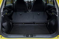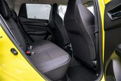 This car doesn't only show some other affordable small hot hatches how they should drive. It also, for us, offers a good template on how they should look. Muscular shoulders, blacked-out A-pillars and what Suzuki calls 'under-spoilers' all-round deliver a potently understated level of pavement presence but also a demeanour that's assertive enough to suggest you might be in for a bit of fun at the wheel. This MK3 Swift Sport is 50mm longer than a standard Swift model and sits 15mm lower to the ground than the previous generation version did. A little disappointingly, unlike that old MK2 model, there was no three-door body style option offered, but Suzuki sought to retain a three-door-like look by hiding the rear door handles in the trailing edge of the C-pillar. Of course, as usual, what's more important is the stuff you can't see, namely this MK3 model's stiff, sophisticated 'TECT' platform, designed around what Suzuki calls 'Total Effective Control Technology'. This uses lots of high strength steel to make the structure very strong but also low in weight, which is the main reason why this Swift weighs so little, even by relatively light class standards. You feel this model's light weight when you slam the driver's door shut, which isn't ideal, but otherwise, by supermini standards, the cabin feels quite nice, providing you're not expecting premium-quality fittings and acres of slush-moulded soft-touch plastic: you're not paying for that kind of thing here and you don't get it. What you do get is just enough interior differentiation to make you feel you're in a serious hot hatch. The grippy branded sports bucket seats are probably the highlight, proving to be supportive and surprisingly comfortable, providing your frame is narrow enough to fit into them. There's also a set of aluminium pedals, a chrome-accented gear knob with a red-stitched gaitor and emotive red flashings on the fascia and the centre stack. This car remains one of the more compact models in the supermini hot hatch segment when it comes to rear seat space. Some might even find it a touch claustrophobic in the back. Still, thanks to that lengthened wheelbase and some extra room liberated from the engine compartment, there is now marginally more legroom on offer than there was in the old MK2 model. Out back in the boot, the light tailgate raises to reveal a cargo area space that offers 25% more space than was available in the previous generation model. The 265-litre capacity isn't anything like enough to threaten the segment class leaders in this regard but it was at least enough to get this Suzuki back on a competitive footing.