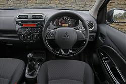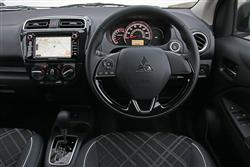 Even if you didn't know that the Mitsubishi design team had set out to style the most aerodynamic small car you can buy, you might guess the fact from a look at this Mirage. Everything about the shape - the front grille with its minimal opening, the wind-cheating front bumper, the deeply sculpted sides - all of it's there to optimise a slippery airflow, and though the result certainly isn't the most distinctive look in the citycar sector from the 2016-2021 era, it's one that effectively achieves its objectives, with a 0.27Cd drag co-efficient that embarrasses boxier rivals. And inside? Well it was upgraded in post-2015-era Mirage models, particularly with the plush 'Juro'-spec models that feature classy piano-black trimming and black leather upholstery. There's also plenty of storage space, plus Bluetooth connectivity with music streaming, a USB slot, an aux-in point and a DAB radio. Other rare features to find in this sector at an affordable price from this period include heated seats and climate control for the air conditioning. On the back seat, things are just as they were with the original version of this design, save for the classier upholstery trim. There's a usefully low transmission tunnel, the low window line makes things feel light and airy and, as we said when we tested the earlier version of this car, the overall amount of space you get in the back is impressive given the diminutive exterior dimensions. And cargo space? Well fitting in larger items is slightly impeded by the high-ish loading lip and restricted hatch opening, but once you've got your stuff in and pushed forward the 60:40 split-folding rear bench, there's 600-litres of capacity if you load up to the window line and 910-litres of space if you're able to load up to the roof level. Not many cars in the class from this era can better that.
