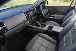There's very little to visually give away the fact that this C5 Aircross variant is a hybrid, apart from 'Hybrid' badging on the front wings and the tailgate. The brand's signature 'Air Bumps' make an appearance just above the lower side sills, but they're toned down here. Inside, as with most modern Citroens, what you find is a mixture of interesting design, a few cheaper plastics and some clever electronics. Oh and lovely seats, these being of the generously proportioned 'Advanced Comfort' variety. The instrument binnacle is another cabin talking point, conventional dials completely replaced by a standard 12.3-inch colour screen that's fully configurable and customisable. Just about everything else you'll need to know can be found on the 8-inch centre-dash capacitive touchscreen which delivers everything you'd want - the usual DAB stereo, 'phone, navigational and smartphone-mirroring functions, plus WiFi, a Connected Apps package and various specific EV screens. At the rear, that lengthy wheelbase translates into a cabin that feels significantly larger than that of most models in this class. And as in an ordinary C5 Aircross, you get what Citroen claims is the 'most modular' rear bench arrangement in the segment, with three seats that individually slide and recline, MPV-style. Few PHEV competitors can match the size of this C5 Aircross model's luggage space area either, the extent of which depends on the position of the sliding second row bench. The 460-litre capacity is 120-litres down on what you get in an ordinary C5 Aircross though, thanks to battery placement beneath the cargo area base.